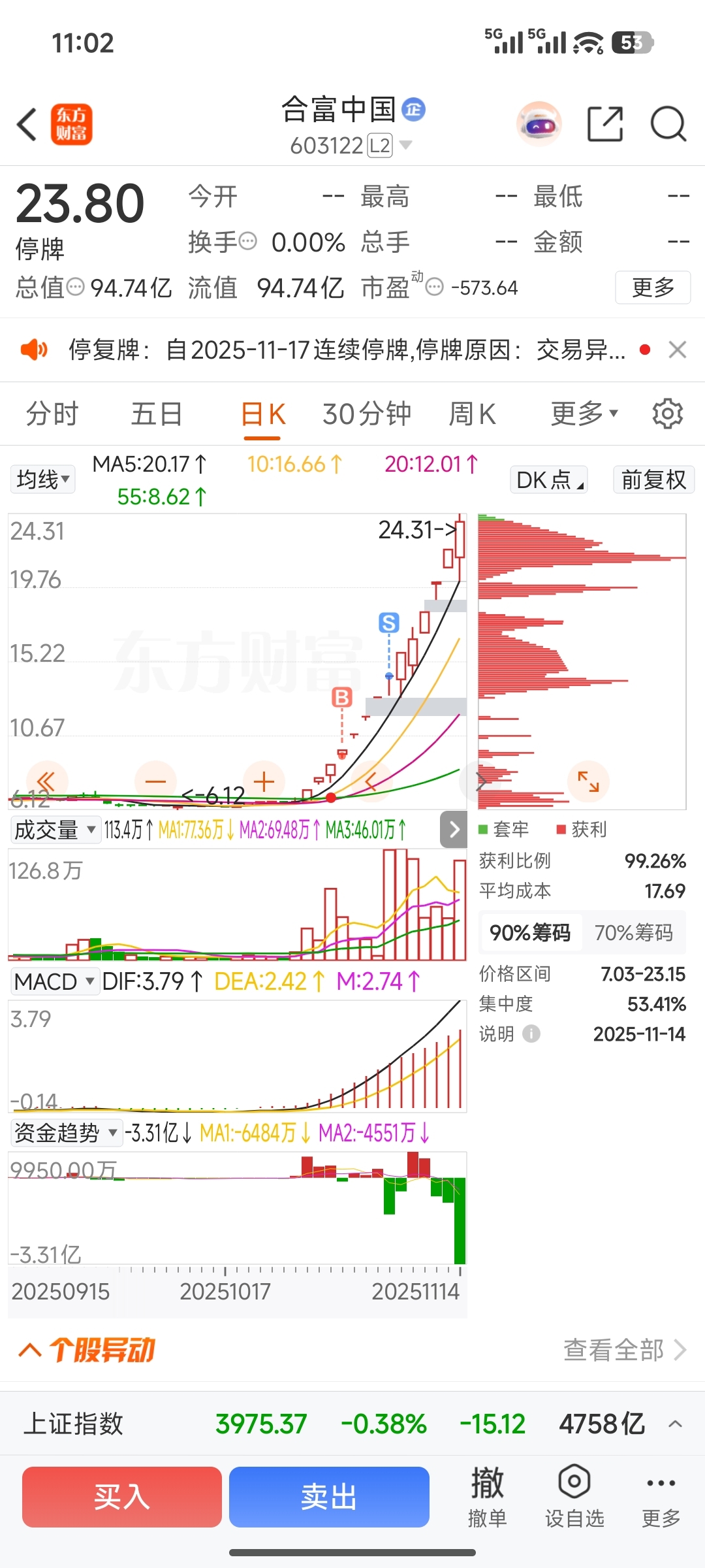$合富中国(SH603122)$ 终于停牌了,不然我真的意难平,见好就收往往错过大肉