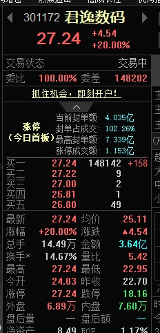 301172君逸数码强势封板[加油][给力][给力][给力][给力][给力][给力]