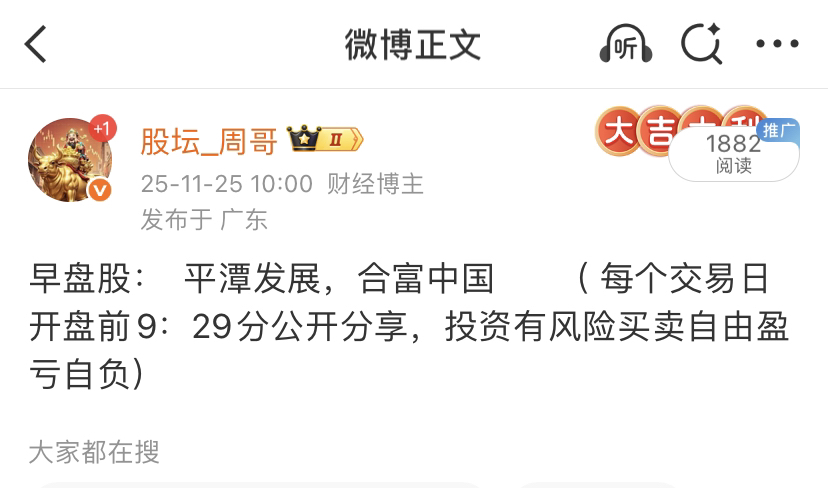 平潭发展这个是市场的老龙,今天企稳还是有预期的,合富中国如果低吸也是一个道理今天