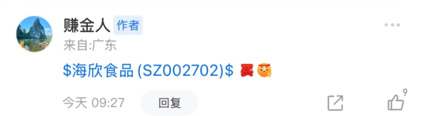 $海欣食品(SZ002702)$ 早盘打板入场明天大概率继续走一字吧?