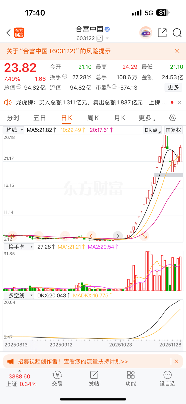 $合富中国(SH603122)$ 合富今天比较被动,接近前高周一看调整!