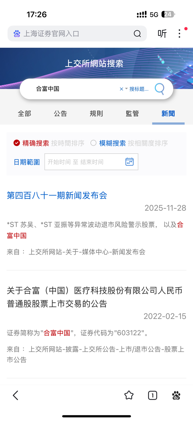 $合富中国(SH603122)$ 都已经脱离监管,11月24日到28日。