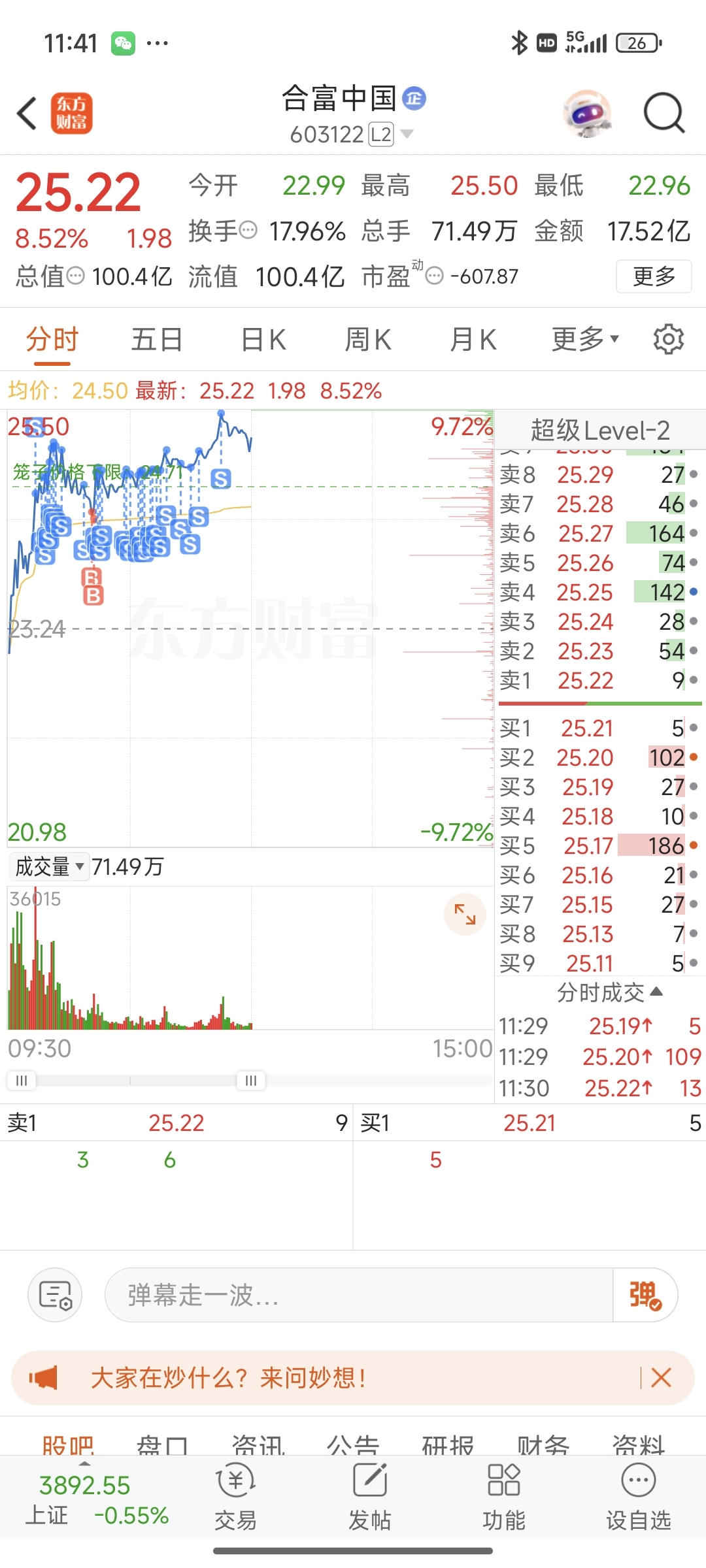 $合富中国(SH603122)$ 兄弟们,我先走了,仓位有点重,就留了3万股,昨天尾盘买了17万股,早上的确的确有点吓人,分批走掉。