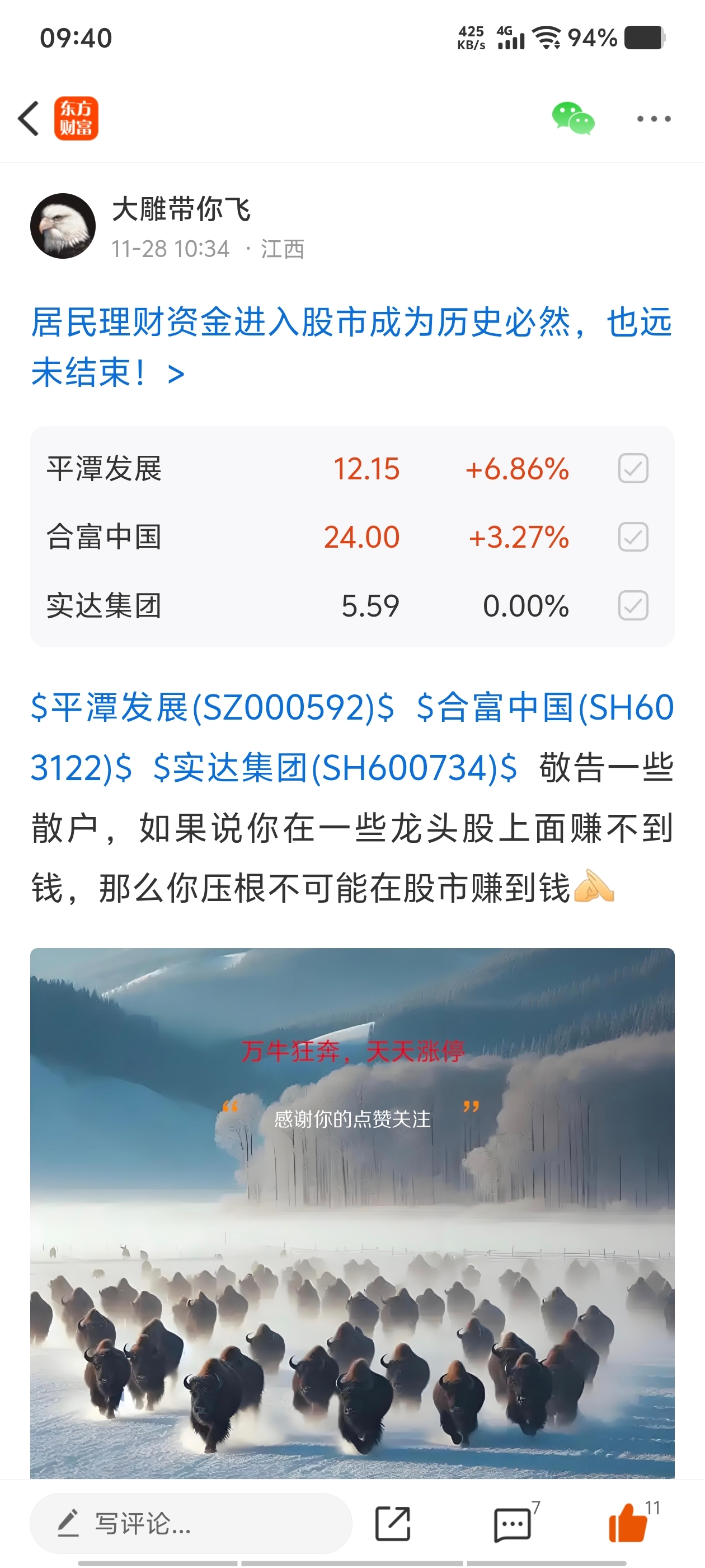 很多人说大雕马后炮,事后诸葛亮,可是我天天提醒的时候你在哪里?涨起来了你又不敢买!买了下跌还喷我!