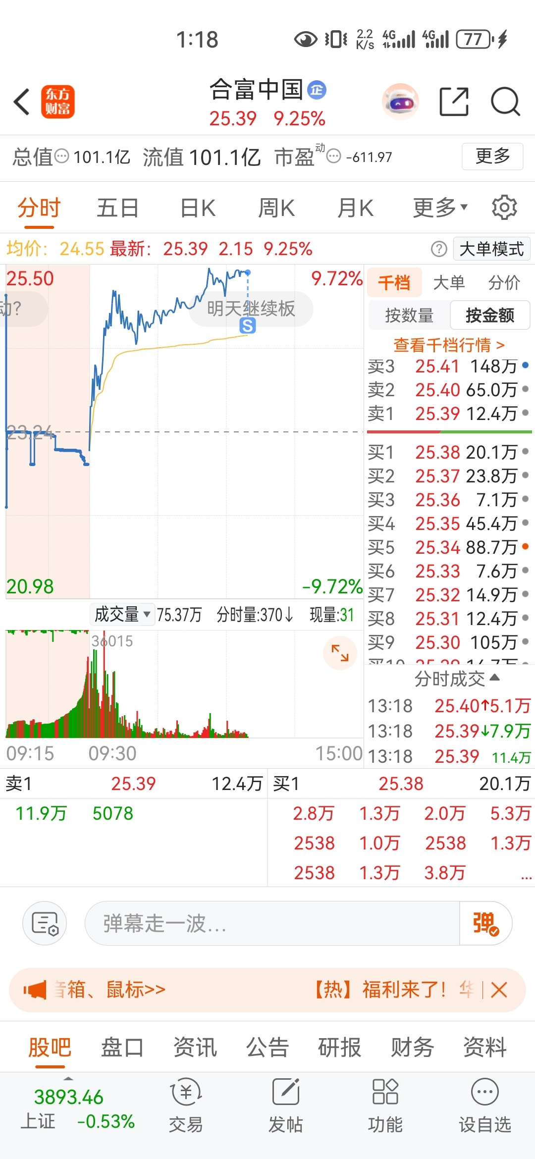 $合富中国(SH603122)$ 气晕了卖飞了,为什么不早点上板