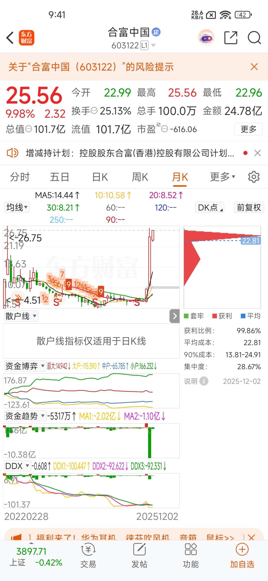 合富中国离场还是持有?筹码峰告诉你答案!短线成本在23附近中线成本在20附近,长