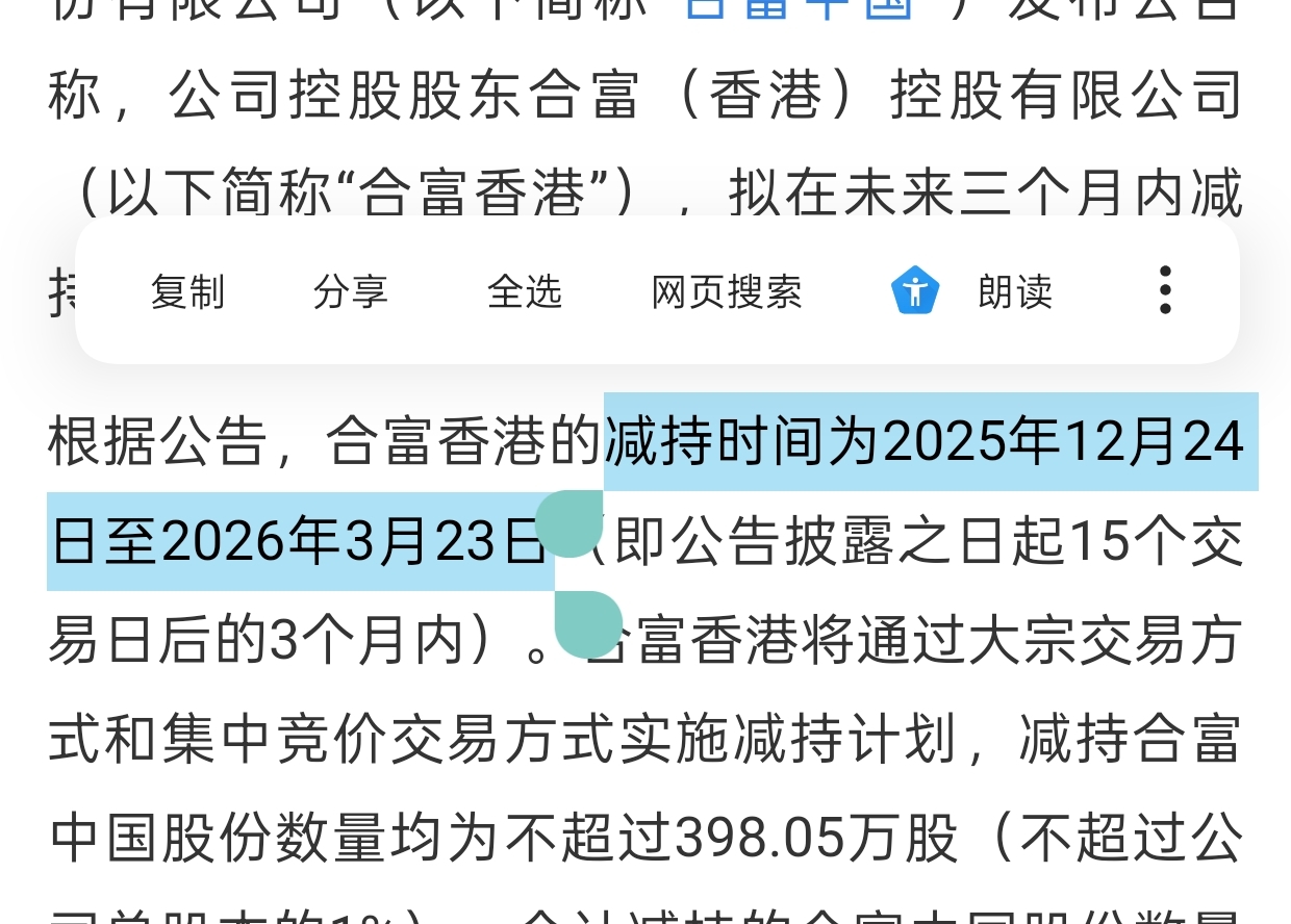 $合富中国(SH603122)$ 你们看公告只看标题吗?减持还没开始!!!