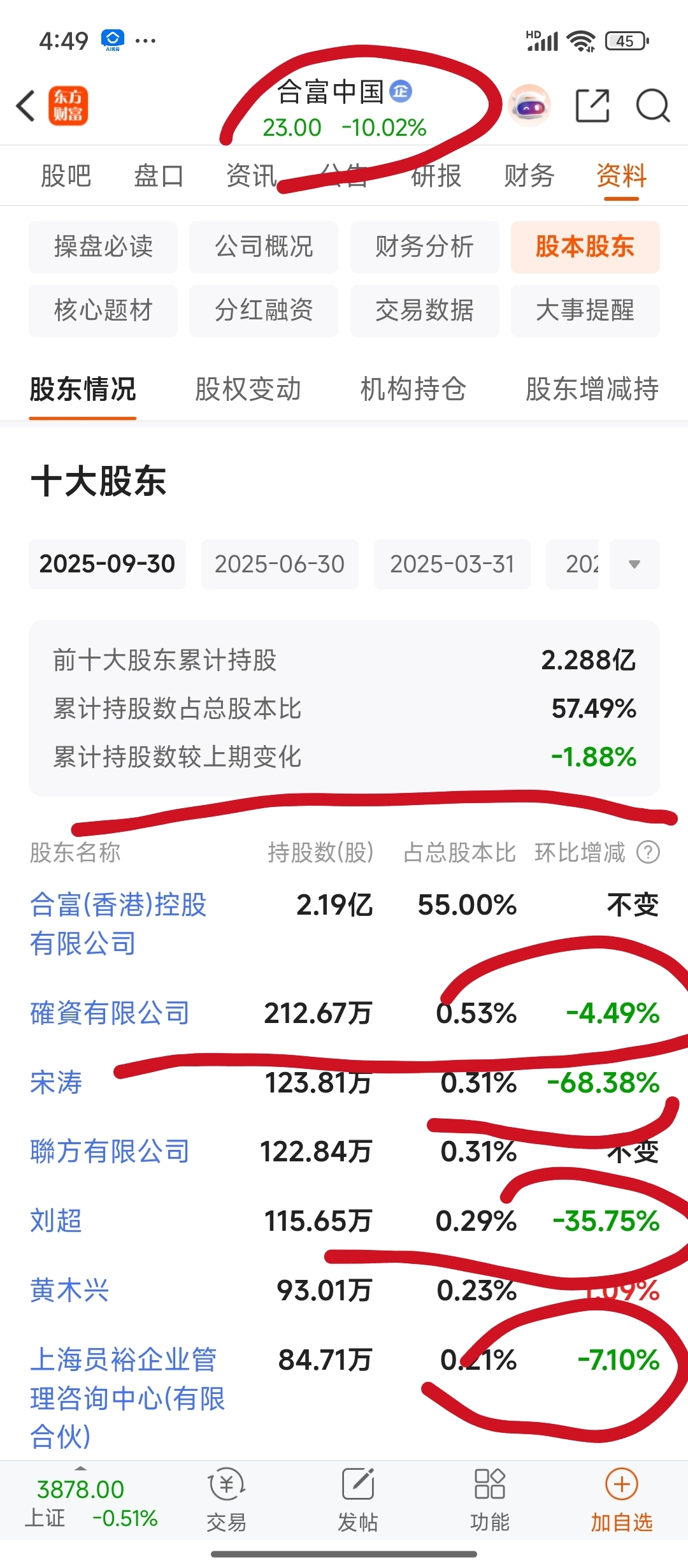 $合富中国(SH603122)$ 散户应该有跟着的吧,有跟的扣个1。被埋了吧,看看多少大股东减持。