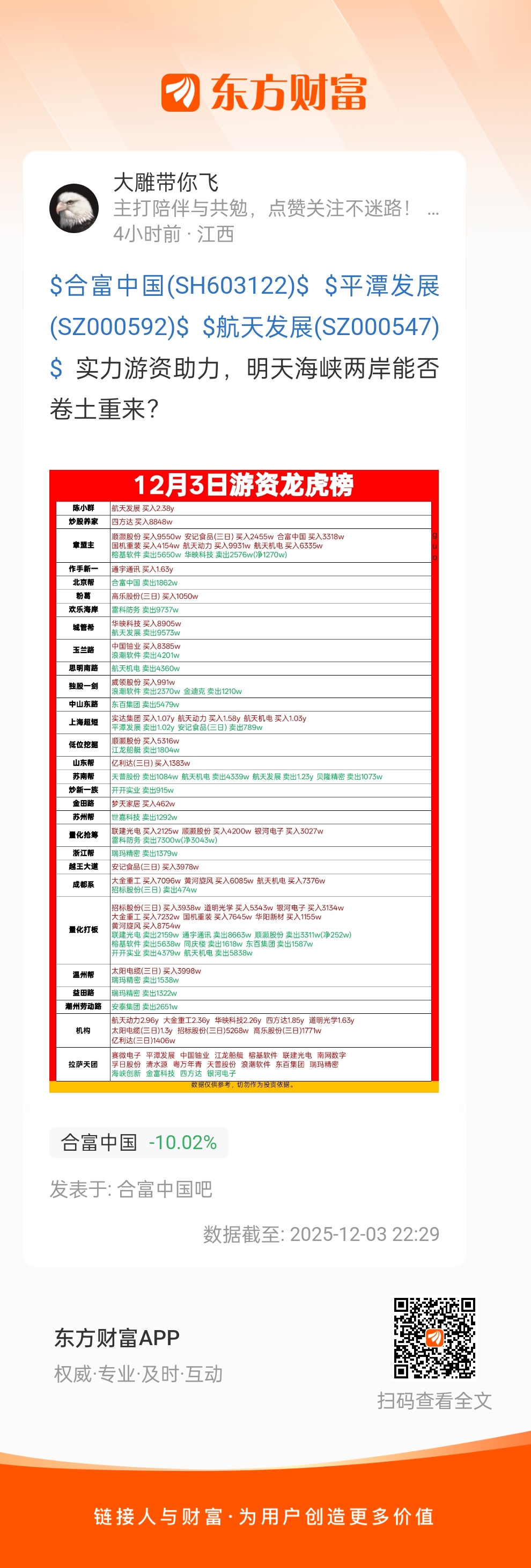 $合富中国(SH603122)$ $平潭发展(SZ000592)$ $航天发展(SZ000547)$ 实力游资助力,明天海峡两岸能否卷土重来?