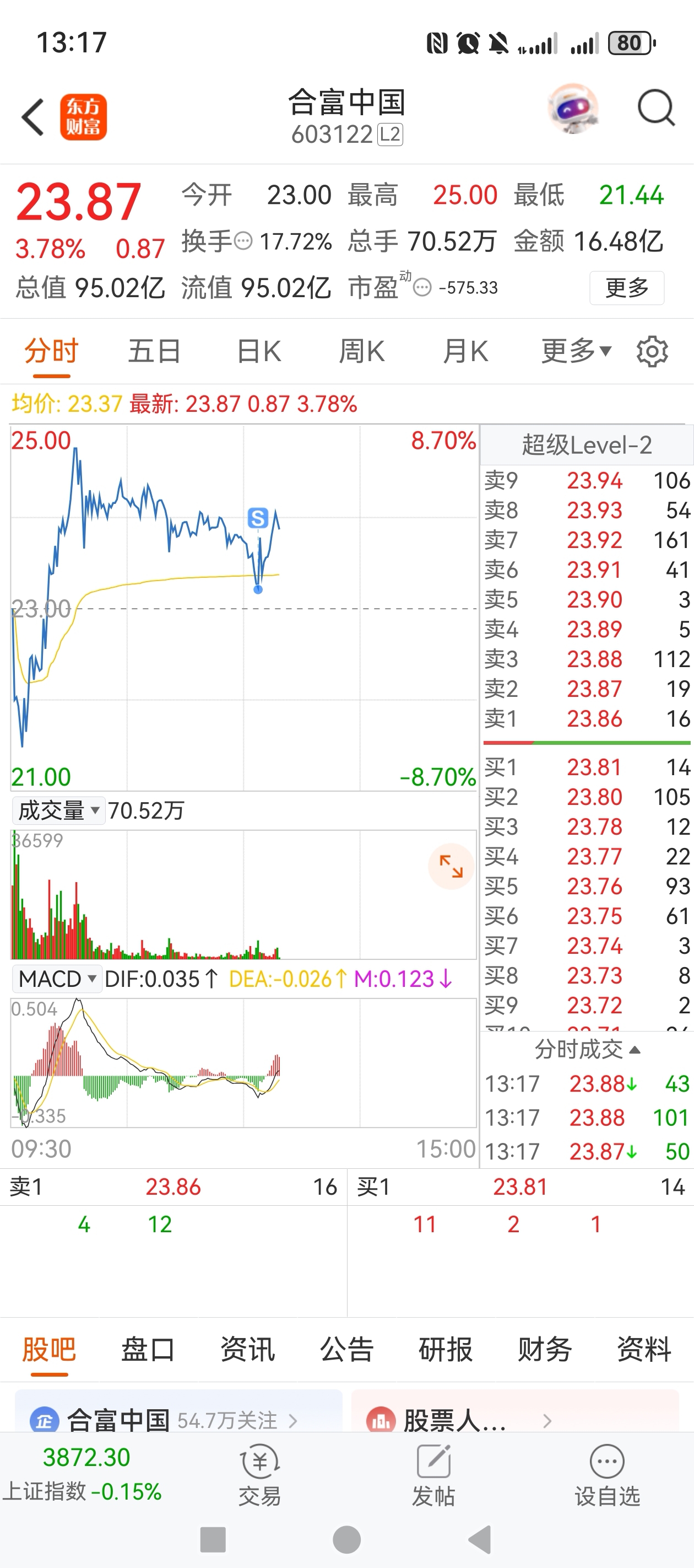 $合富中国(SH603122)$ 就盯着我这几百股是吧