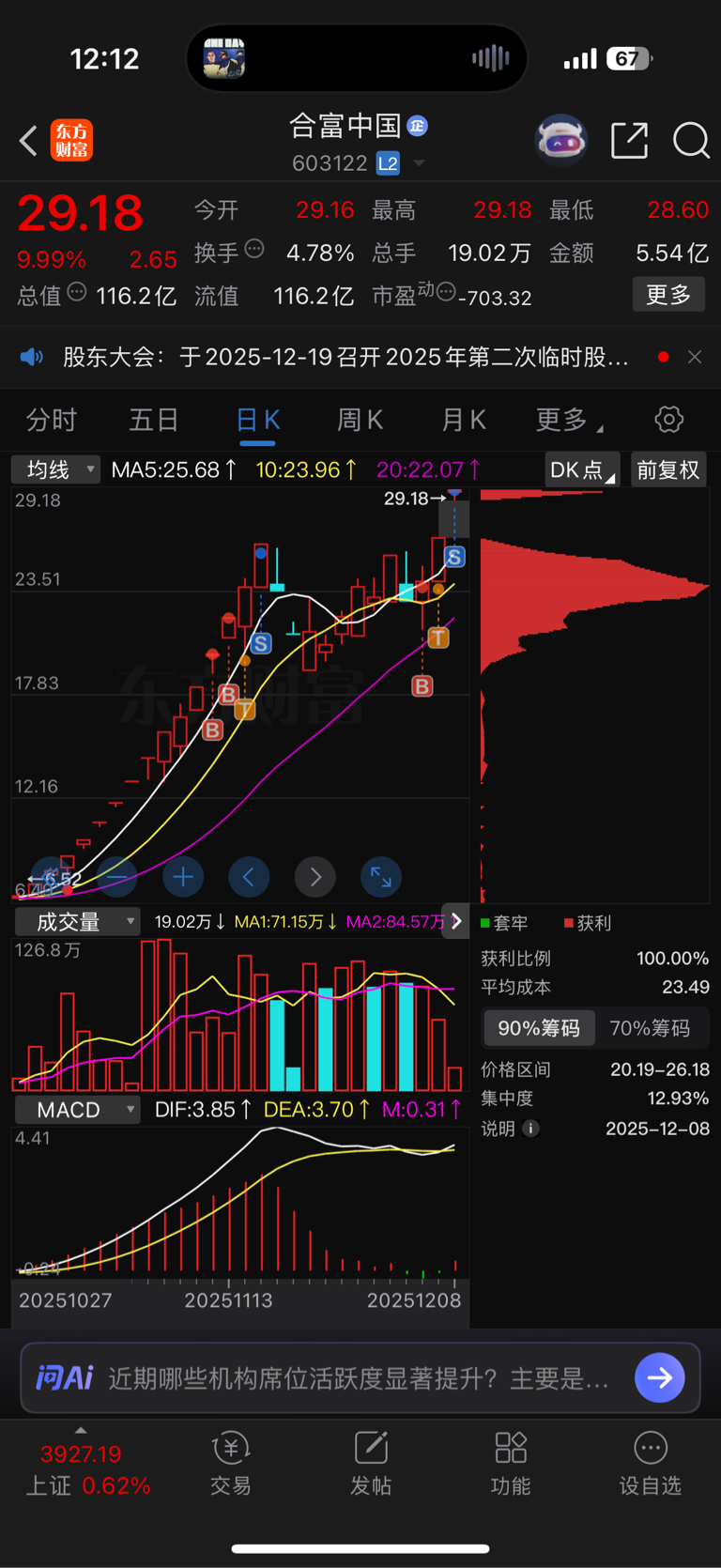 $合富中国(SH603122)$ ,破历史新高,尽头在哪里?天空才是尽头,卖出一半,陪它到尽头,