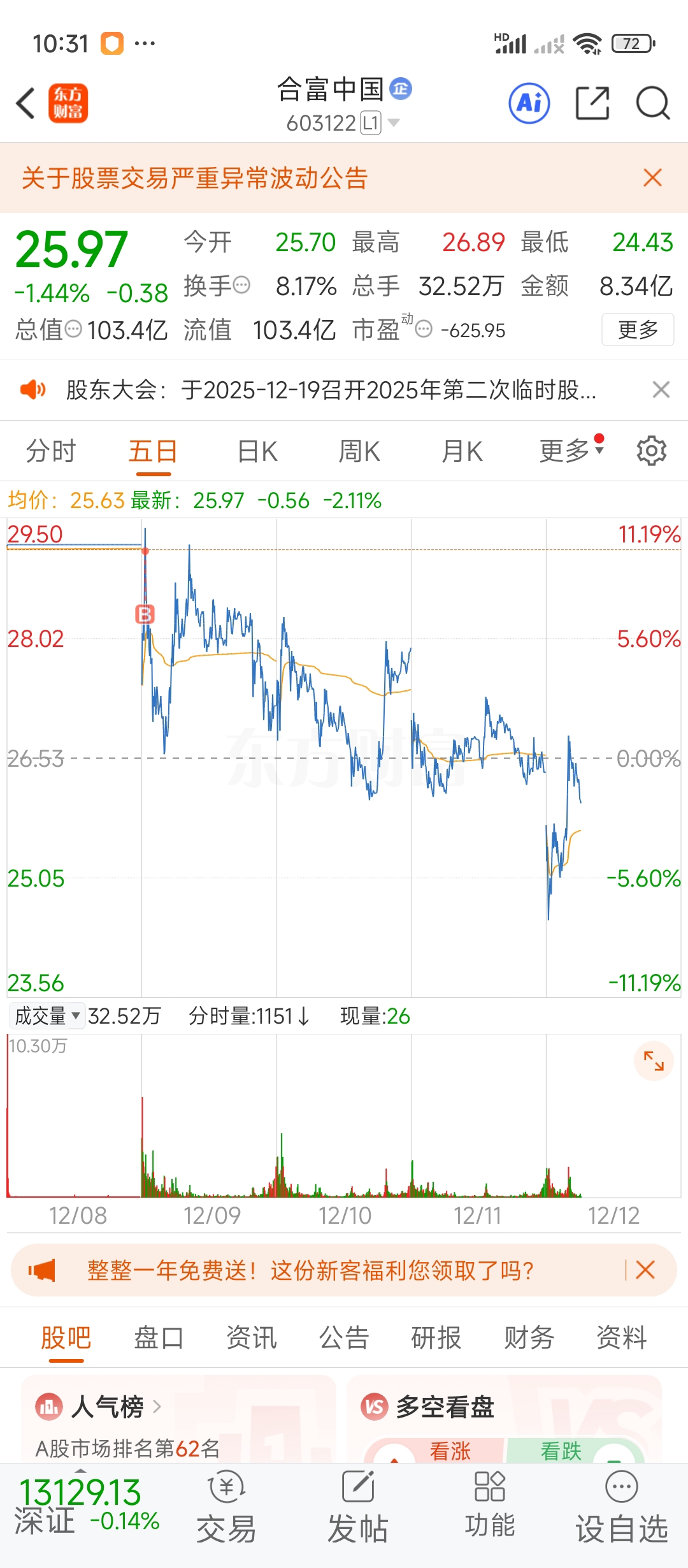 $合富中国(SH603122)$ 调整四天了头一遭啊今天总要有动作了吧