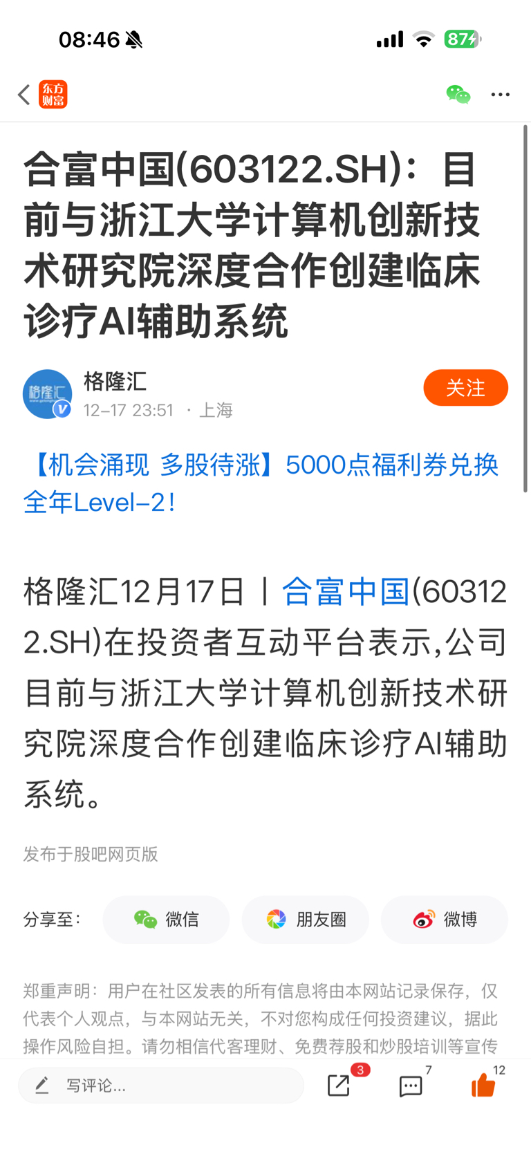 $合富中国(SH603122)$ 抱团叠加蚂蚁AI健康,冲