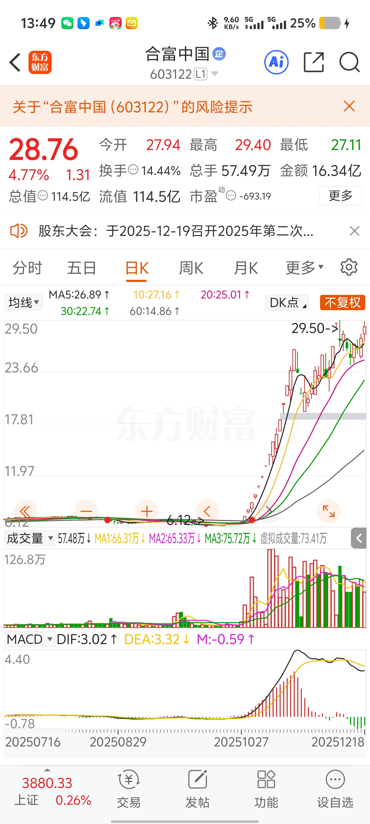 $合富中国(SH603122)$ 顶背离,值搏率很低了。慢慢熬吧,没想到一个没任何业绩基础的概念就能炒成,也是 6 的