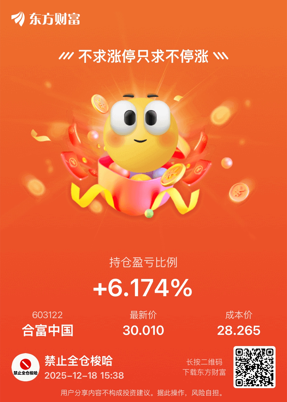 温馨提示: 1.根据《证券法》规定,禁止编造、传播虚假信息或者误导性信息,扰乱证券市场;2.用户在本社区发表的所有资料、言论等仅代表个人观点,与本网站立场无关,不对您构成任何投资建议。用户应基于自己的独立判断,自行决定证券投资并承担相应风险。《东方财富社区管理规定》