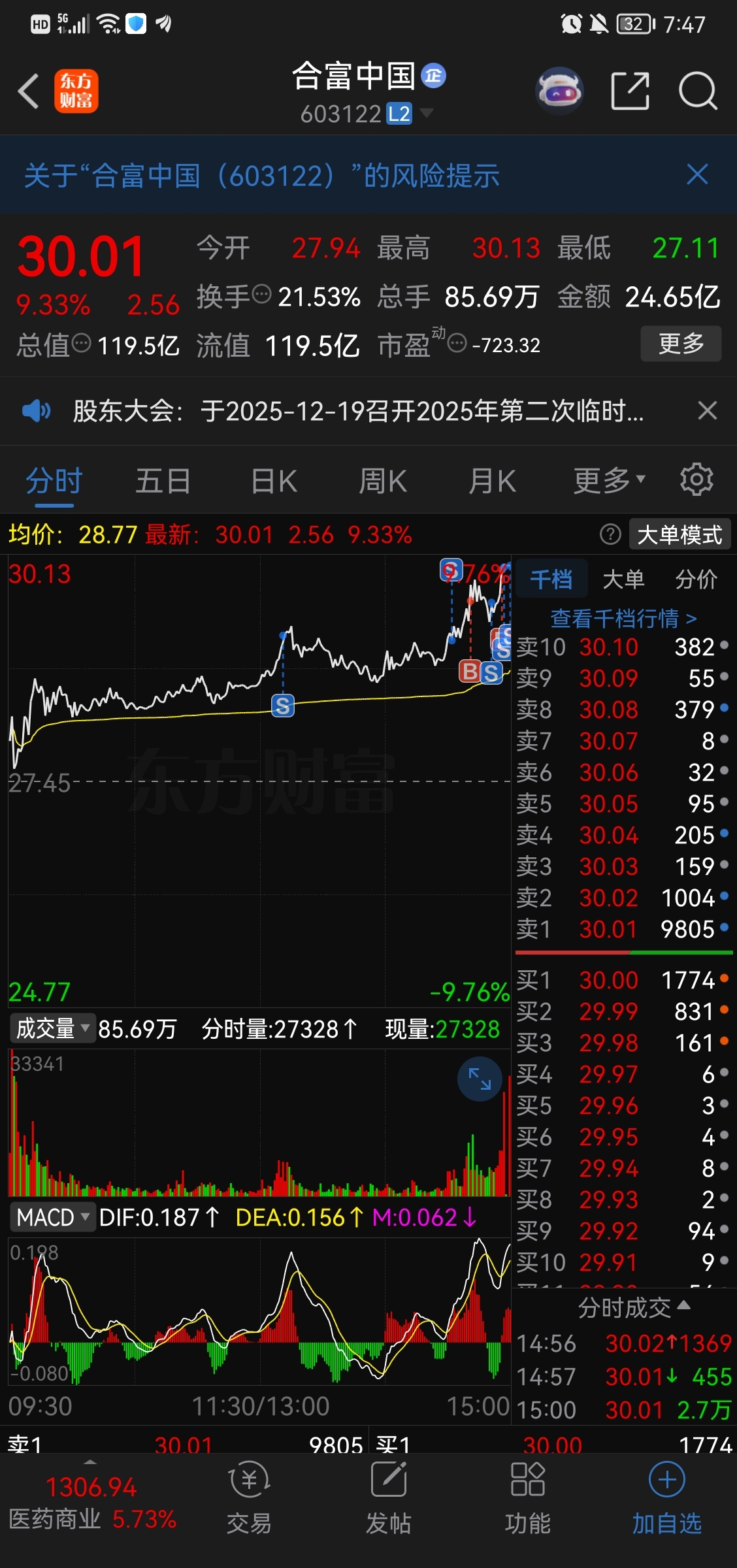 第三次做合富中国了,前两次都赚钱了,只是也没有拿太多,今天尾盘竞价能卖的全卖了,