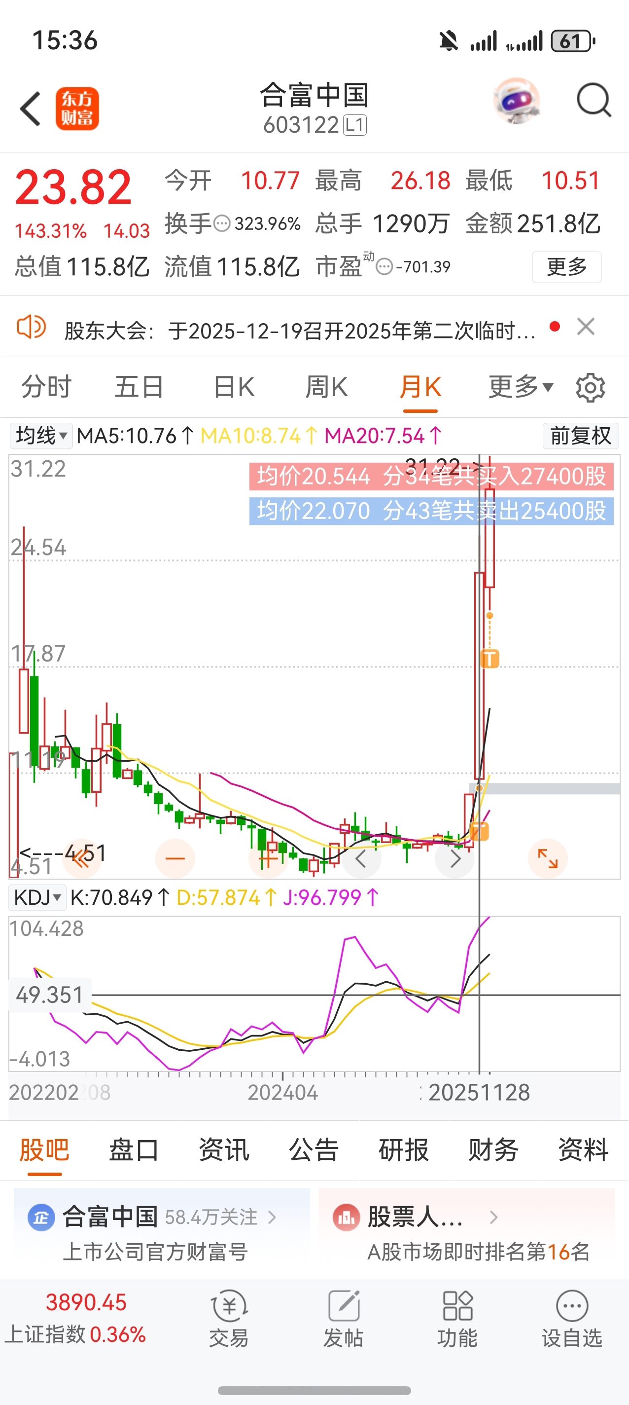 是时候跟合富说声再见了,滚动操作了接近一个半月,新高后做得就很一般,一直没敢买多少。感谢合富中国带来的利润。
