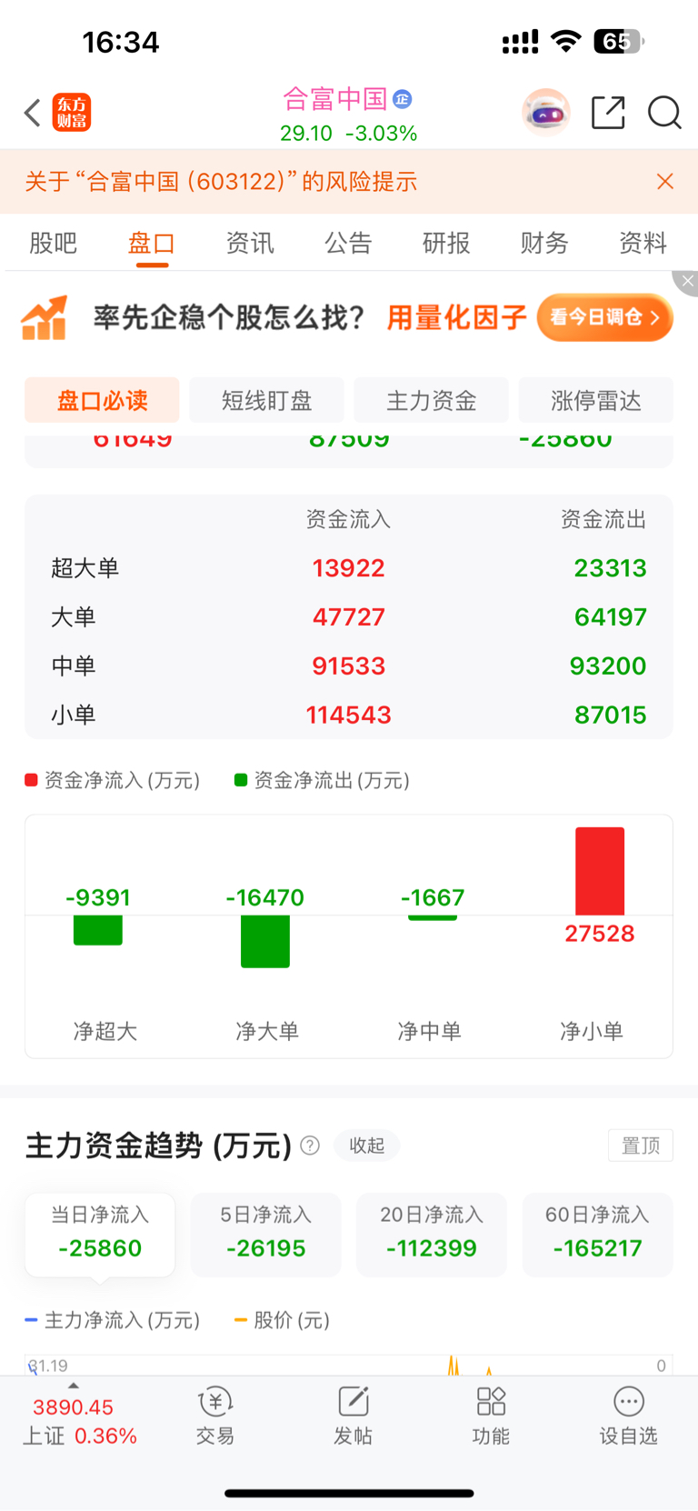 $合富中国(SH603122)$ 看这个资金图,全天小单流入这么多,套了几亿的小散户资金,散户可怜啊,这次可真成了。评论区有高手吗,预测下下周是跌停开还是深水开后再跌停?