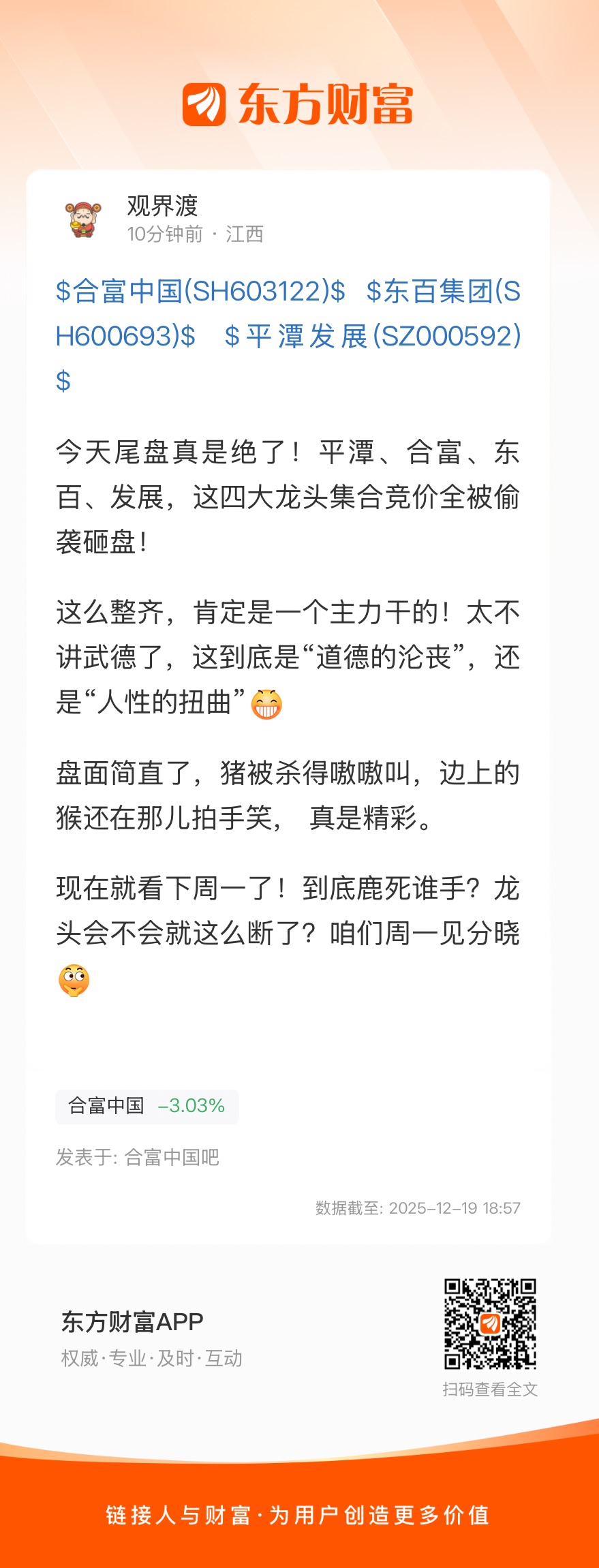 今天尾盘真是绝了!平潭、合富、东百、发展,这四大龙头集合竞价全被偷袭砸盘!