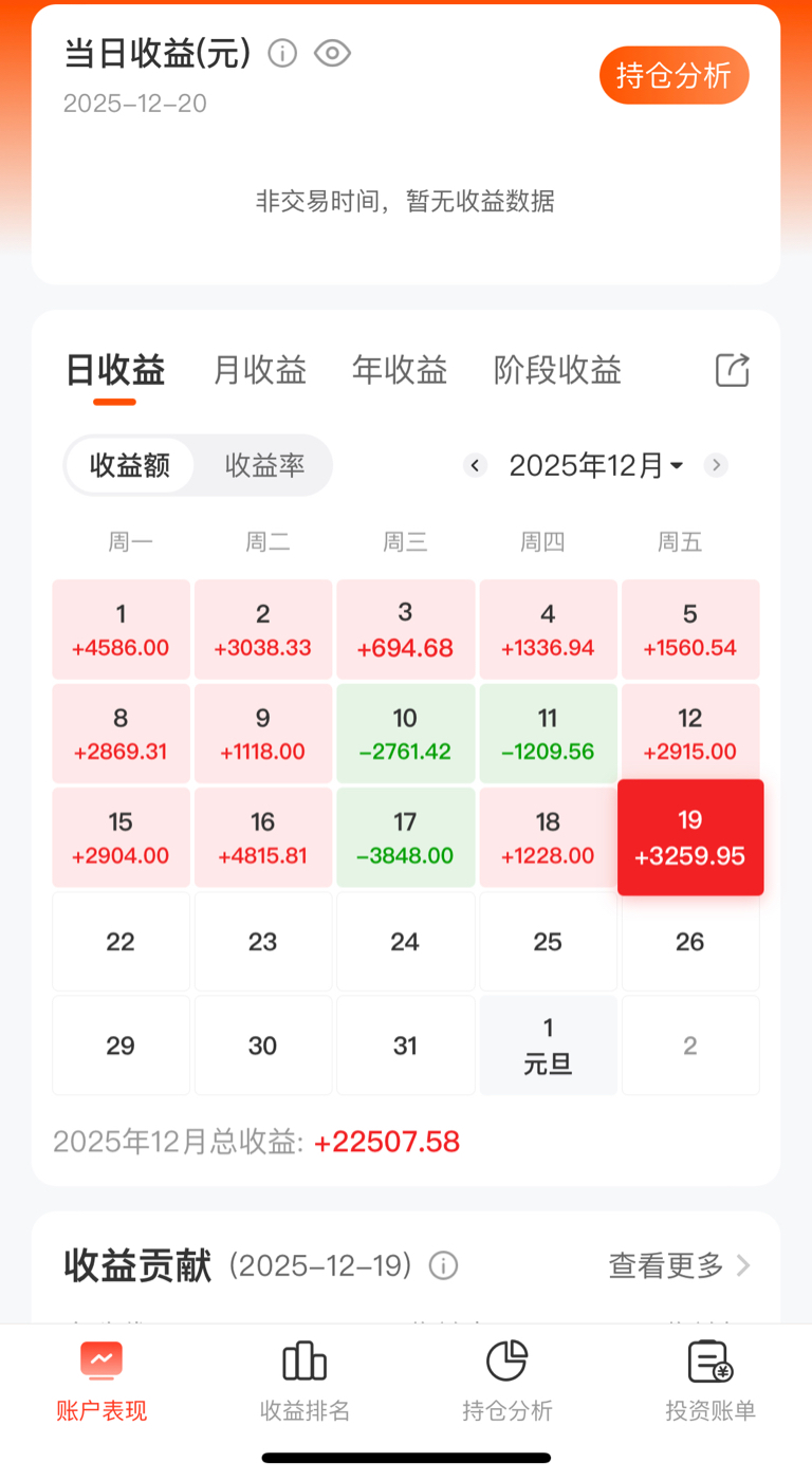 $航天发展(SZ000547)$ 解除的7700手下周二就可以交易,交易意味着什么,股东可以留着锁仓,也可以出售出货,取决于近期的股价走势和行业发展趋势。再来说一下周五情况,其实前天走得还是更很好,在当天消费和海南板块走强的情况下还能去到最高七个点,承接很强!航发和航天电子12月19日在商业航天板块可以说是当天最强的存在!但是尾盘最后几分钟有断崖式下跌了3个点,卖一有4.5万的卖单出现,制造了部分恐慌,在看最近一周航发的走势,从下跌调整到横盘调整再到今天的放量资金流入,主力一直在洗盘和控盘,还有规避200%涨幅异动监管,这些很有可能是主力故意为之!最重要的一点大家看看筹码峰,是典型的单峰密集型,最强势的筹码形态,没有多余的获利盘和套牢盘,说明主力强势控盘!再回到近期乃至于12月在内的下周行情的核心主线,个人认为还是商业航天+卫星互联网双核板块,以火箭发射段为前期炒作的核心,就12月19日以分化出来的福建板块龙头:合富、平潭尾盘都出现瀑杀直线下跌砸盘,以及以分化出来的消费板块龙头:东百、百大尾盘也是瀑杀直线下跌砸盘,这足以说明在十二月最后阶段主力资金的意图和核心主线方向。周末预知消息国家队长征五号大型火箭12月20日发射,长征十二号甲可回收火箭有平台透露12月23日可能发射,这个平台之前透露过12月3日之前朱雀三号可回收火箭发射的消息,加上漂亮国不靠谱签署的太空战略2028年抢占月球行政令,在有到12月31日还有国家队压轴的2025年火箭发射任务!可想而知商业航天板块在12月份的核心主线的重要性了吧,商业航天板块的核心标的16天11板的航天发展大概率下周要回归龙头位置!成就2025跨年妖股称号!霸榜A股第一头衔,开启第三波主升浪!这波股价要去到30-40元区间,丢2张近期小资金交易成绩,快800字了码字不易,都是个人心得输出,如果对您有帮助,请记得关注点赞#炒股日记# #强势机会# #复盘记录# #朱雀三号火箭发射入轨!商业航天关注度飙升# $商业航天(BK0963)$ #长征十二甲要来了!商业航天如何掘金?#