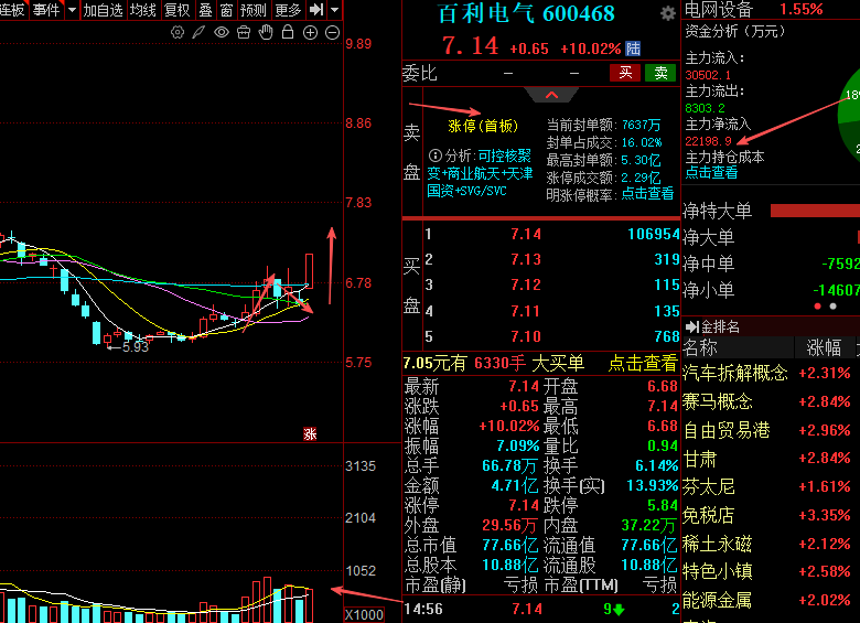 上周五硬气到没朋友,直接强势涨停,看得人眼前一亮!竞价高开后,直接被主力抢筹拉涨,没多久就强势上板,全程没炸板,封单稳得一批,完全不给踏空者机会。成交额4.71亿,换手率6.14%,不算特别高,说明筹码锁定得相当好,主力净流入2.2亿。它踩着超导+核聚变的风口,题材够硬,紫金认可度高,不出现大幅缩量,顺着风口接着往上冲是大概率。今天大概率还能接着往上冲,这标可以多看看,平开或者小高开有大单拉升,可以试试。