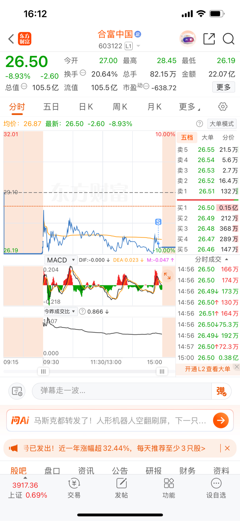 $合富中国(SH603122)$ 亏麻了