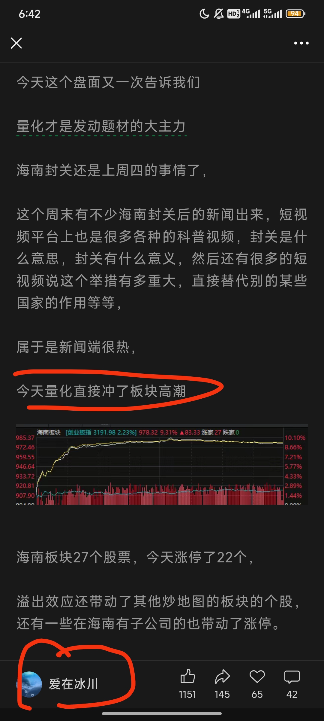 $合富中国(SH603122)$ $平潭发展(SZ000592)$ $福建板块(BK0151)$ 东百今日下午已经亮明态度,合富今日监管结束。受平潭影响,合富资金不敢轻举妄动。明日高标这块看回流……今日海南板块有点高潮了,海南明日出来的资金注意回流福建,航天,消费板块机会。跨年还有7个交易日,留意跨年妖股了!