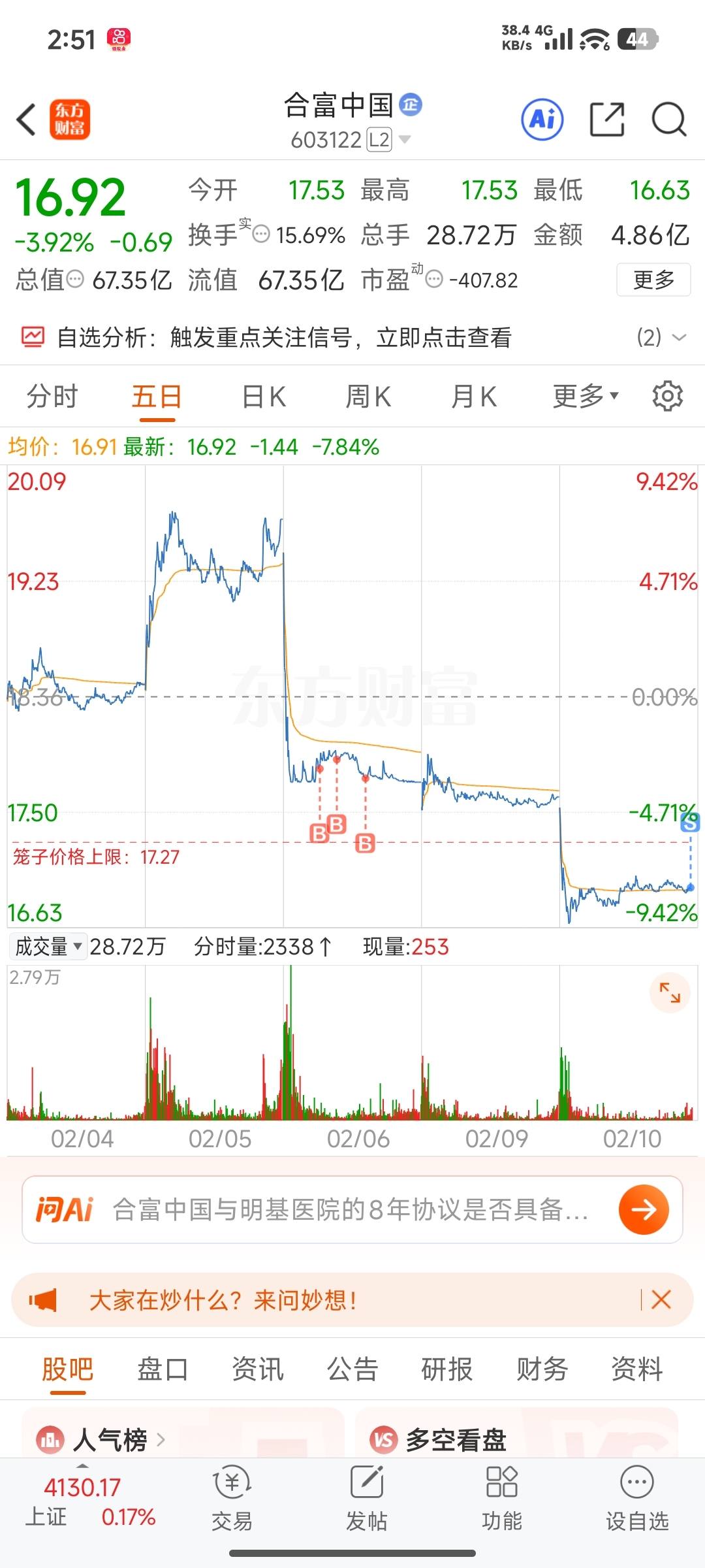 $合富中国(SH603122)$ 留下的发财,本来昨天17.5跌破就清仓的,想博个反弹,结果早上直接杀猪刀,愿赌服输