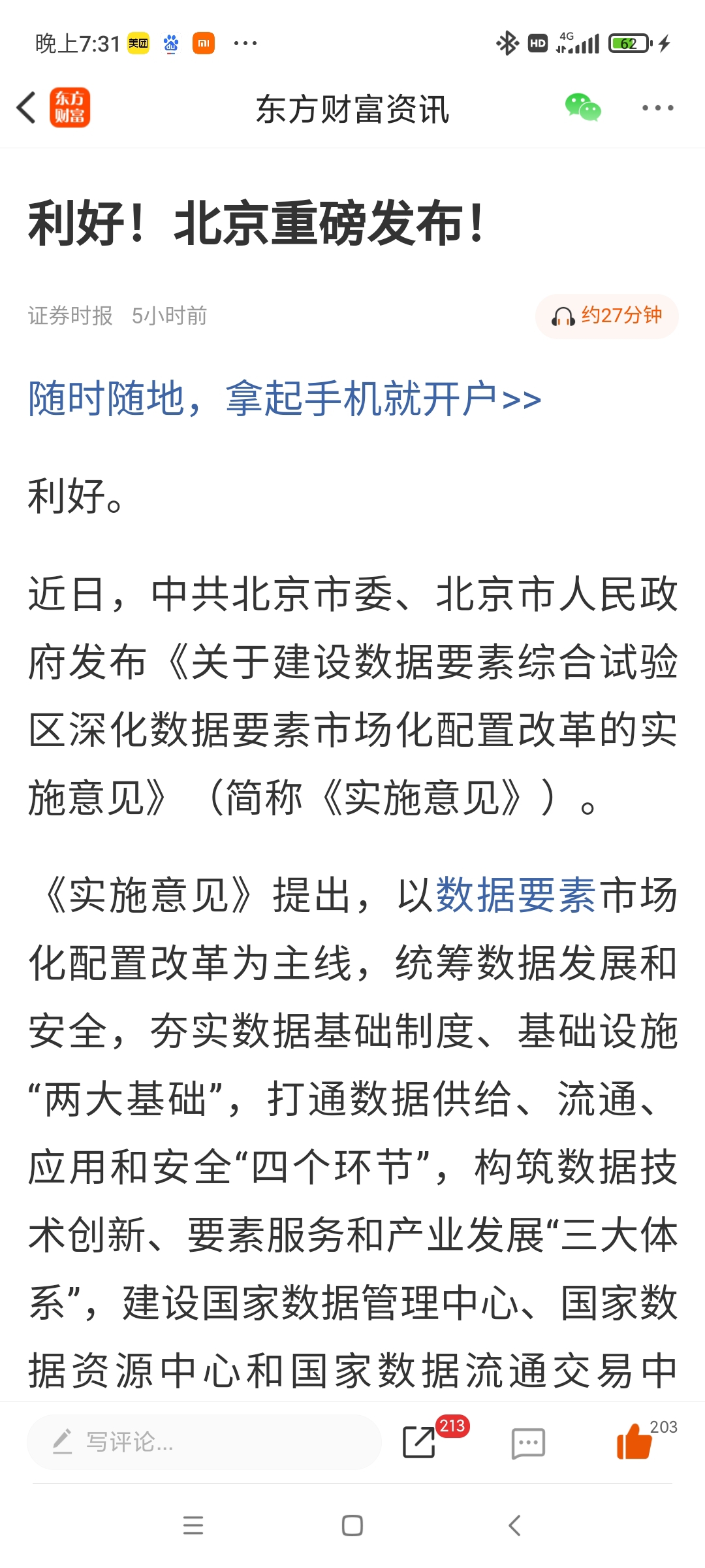 北京打造数据要素实验区,会不会对翠微股份有什么利空啊?