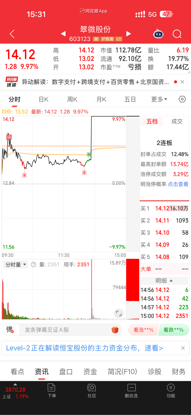 上午就看得很准两个后面跑腿的掉下去了果断卖掉加仓翠微。