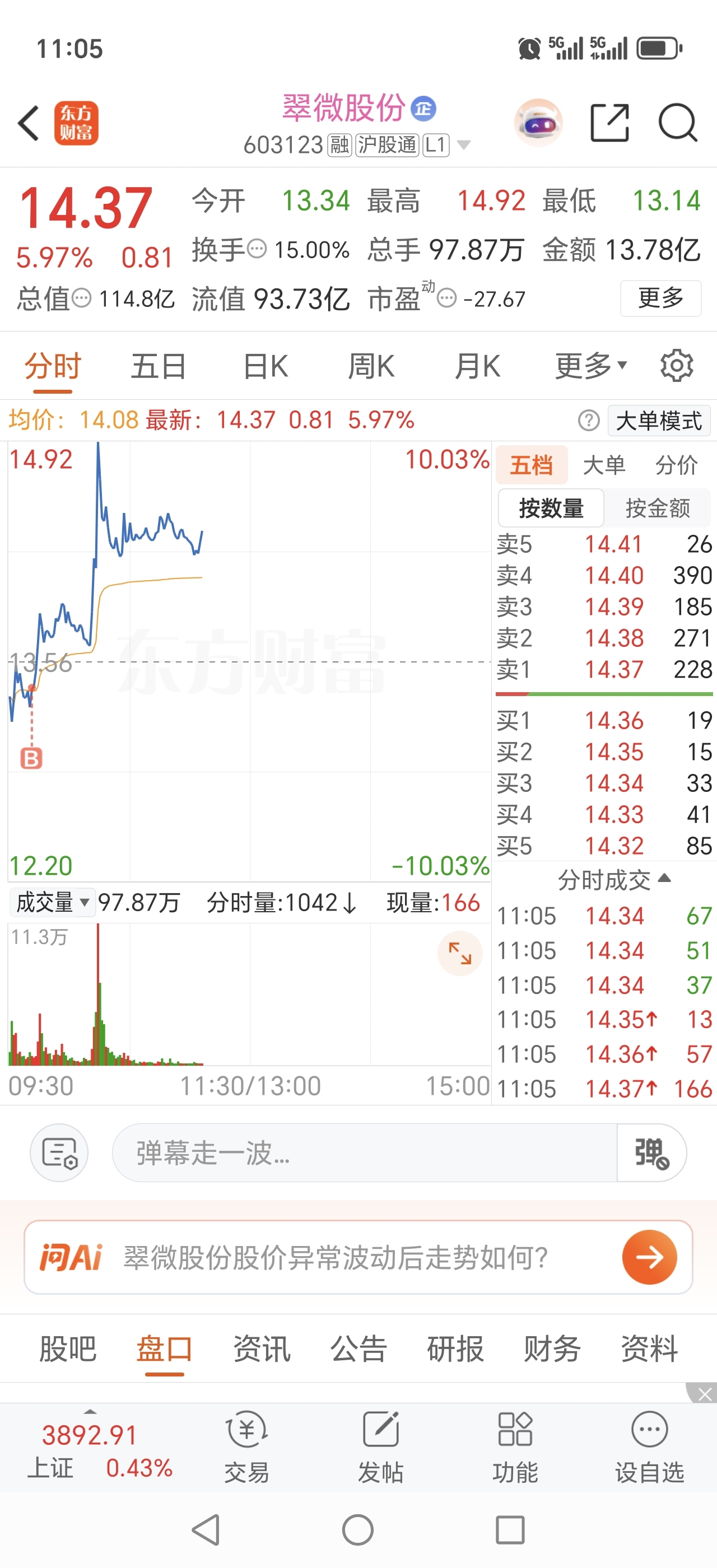 $翠微股份(SH603123)$ 虽然买了,但是遇到触板股还是开心不起