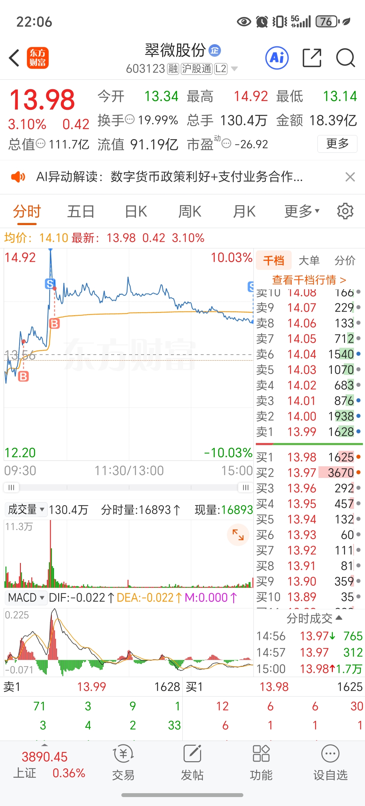 $翠微股份(SH603123)$ 跟着主力做t,绿了就加仓。