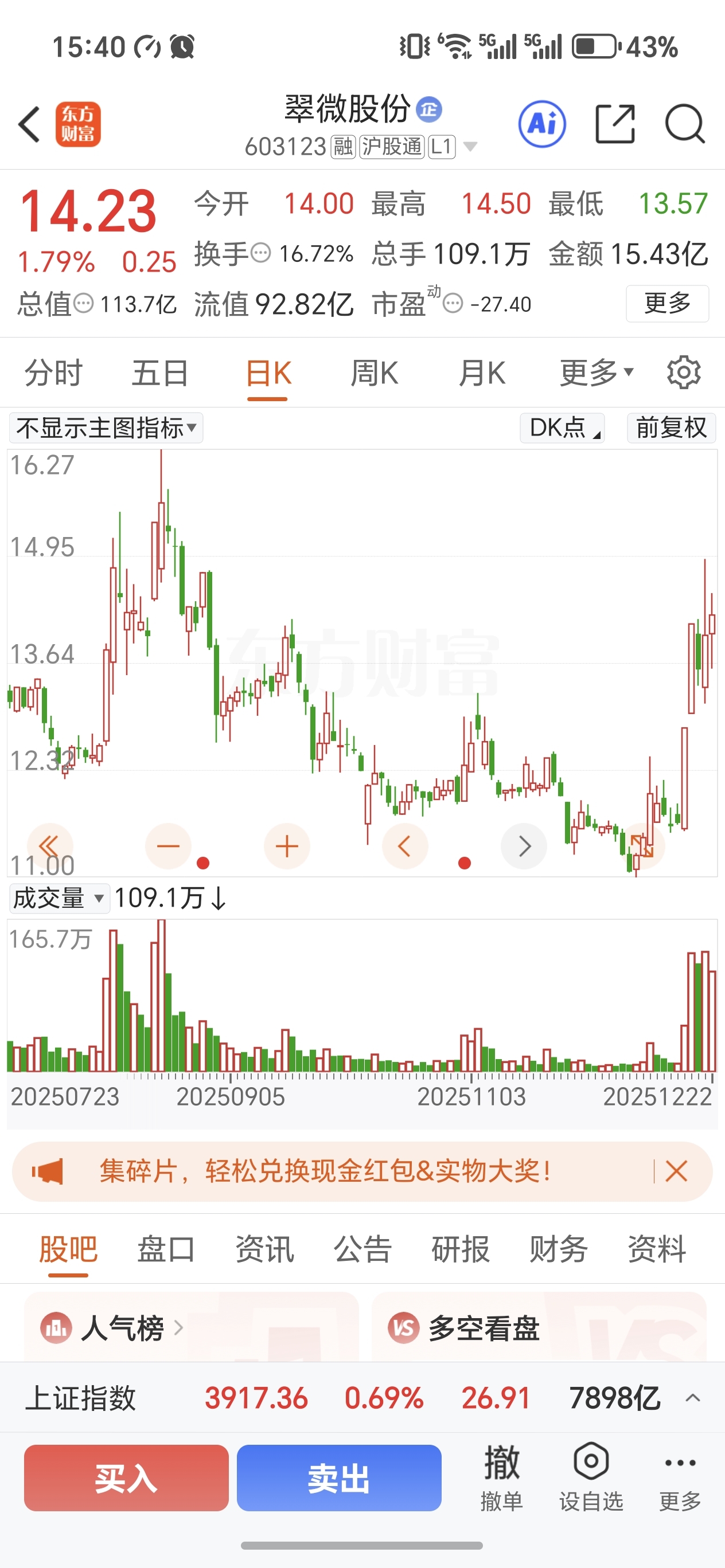 $翠微股份(SH603123)$ 这玩意还是没有气质,周五涨停秒砸
