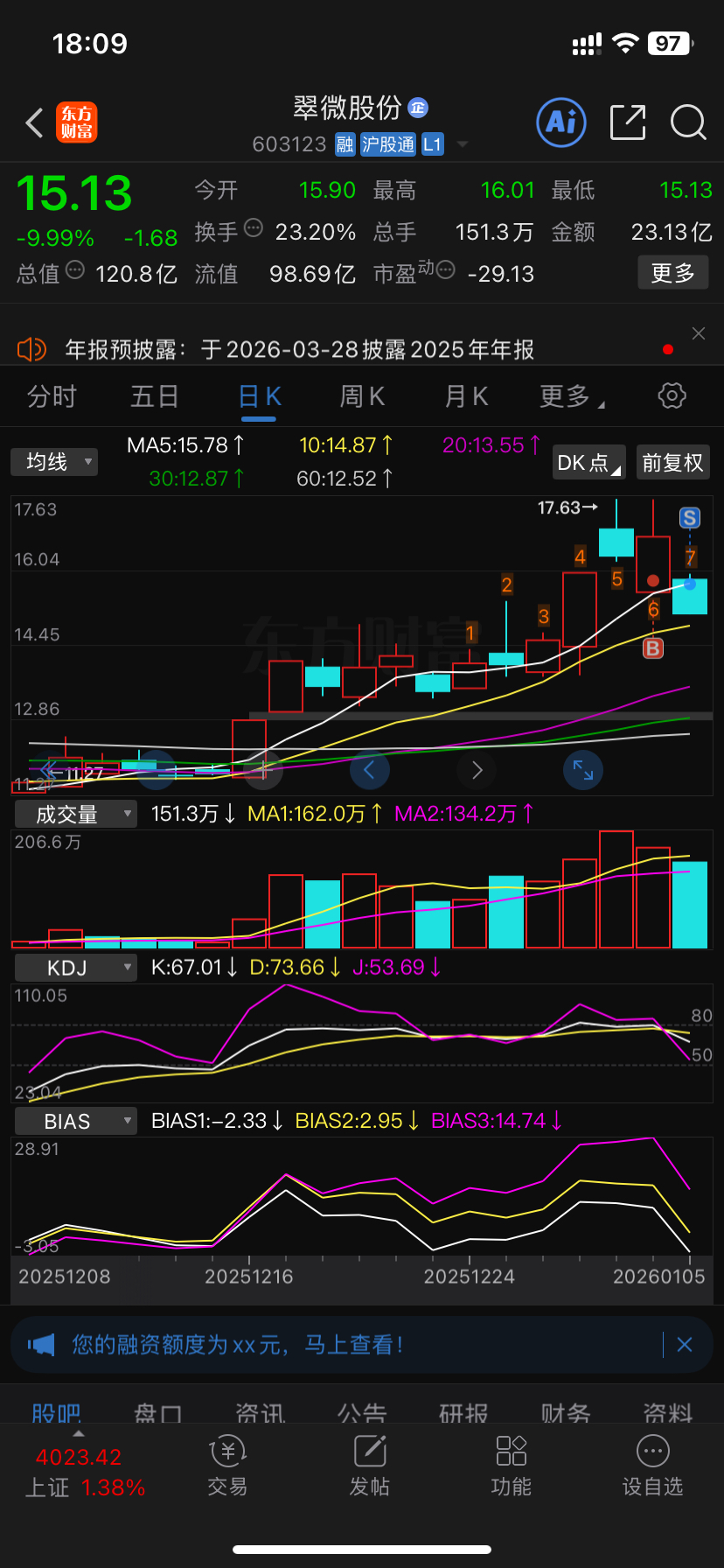 $翠微股份(SH603123)$ 亏了八分,我记住你了,明天抄你底裤