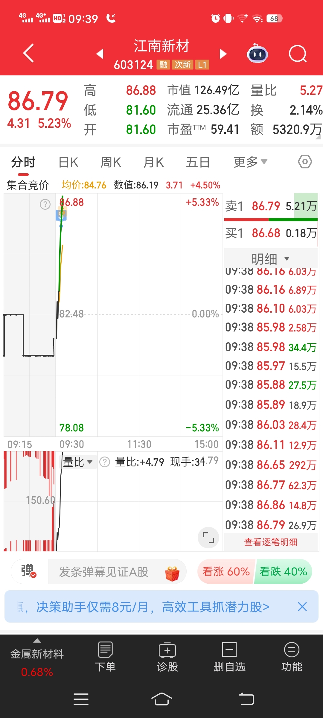 $江南新材(SH603124)$ 预判晚了又是今天拉,跟上次那啥一样,昨天大跌一天今天搞心态,小亏卖飞了