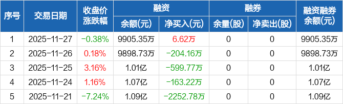 江南新材:融资净买入6.62万元,融资余额9905.35万元(11-27)