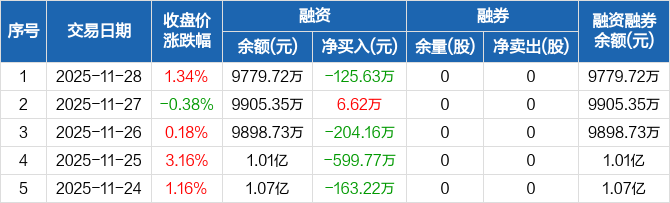 江南新材:融资净偿还125.63万元,融资余额9779.72万元(11-28)