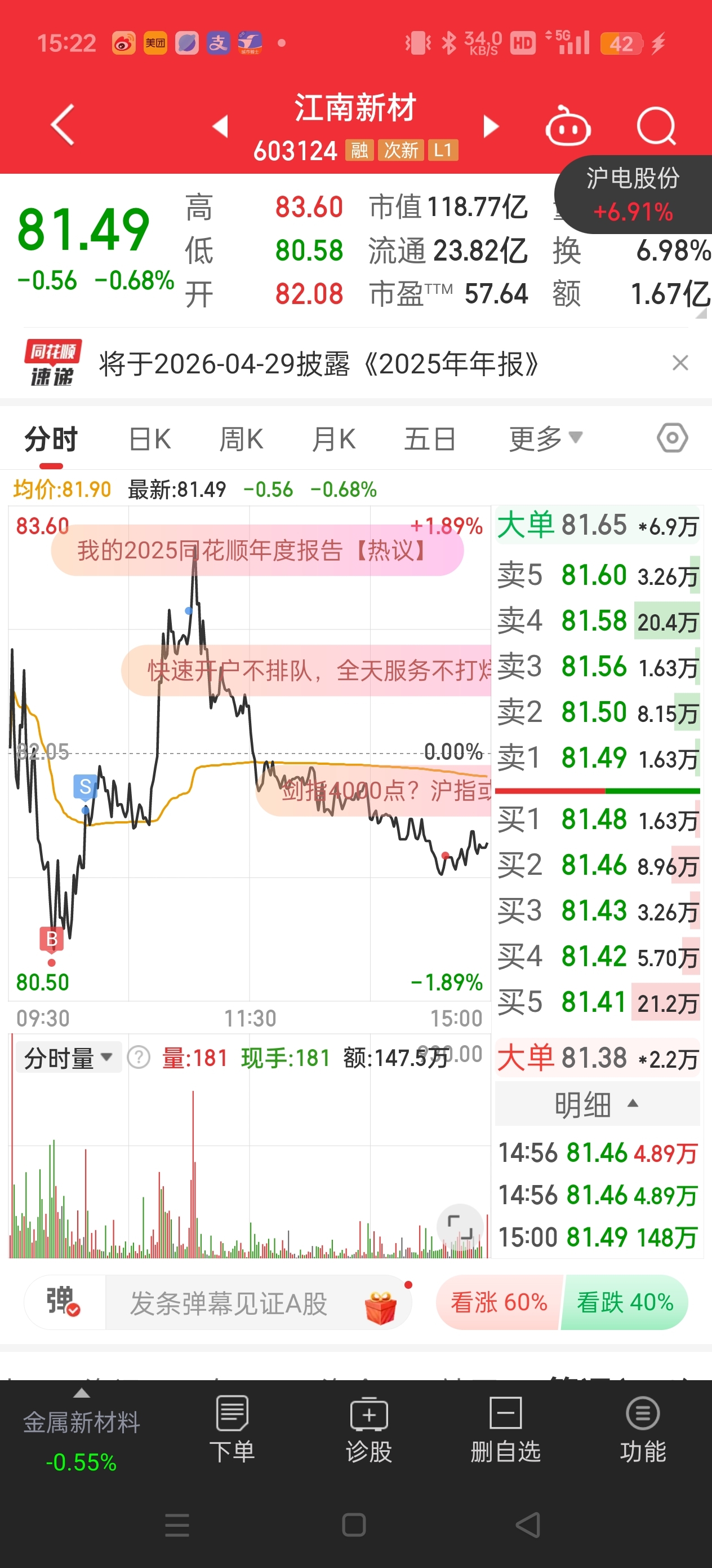 $江南新材(SH603124)$ 今天还行挺舒服的