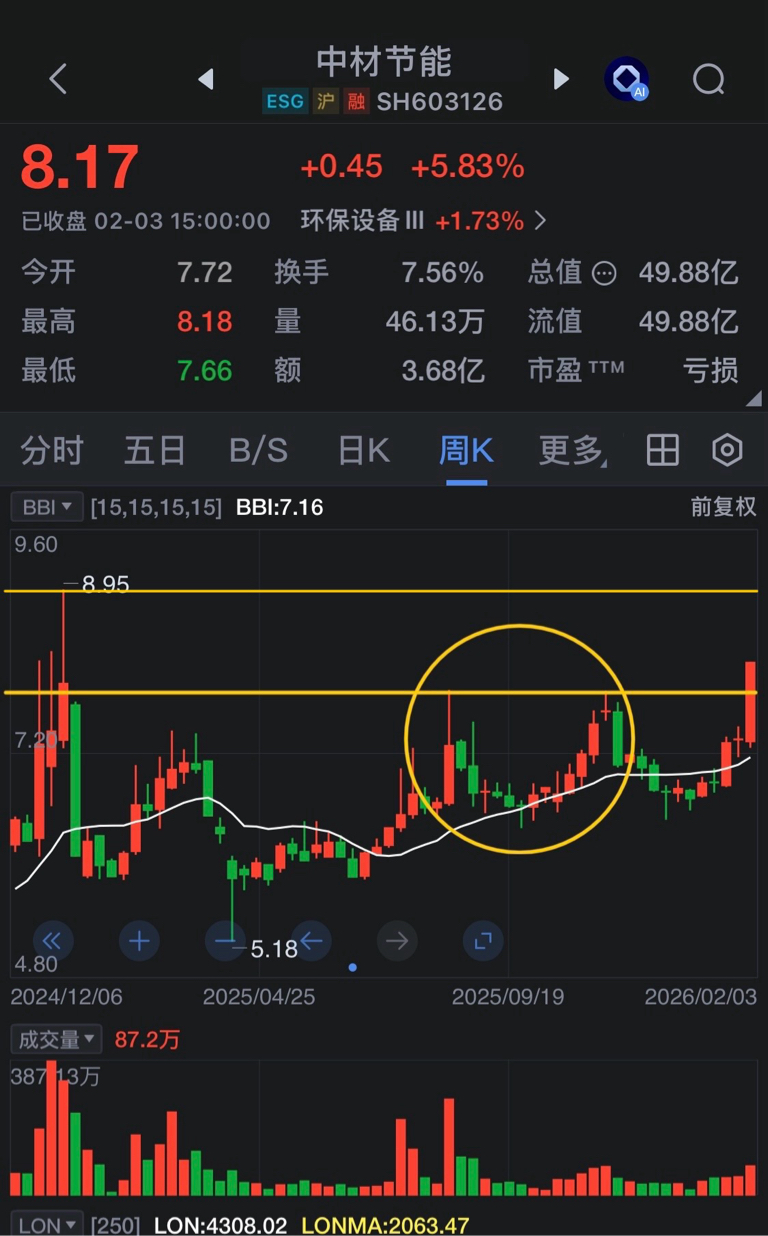 周线级别突破涨一周,盼星星盼月亮终于把周线给突破了,如果明天放量涨停8.99就完