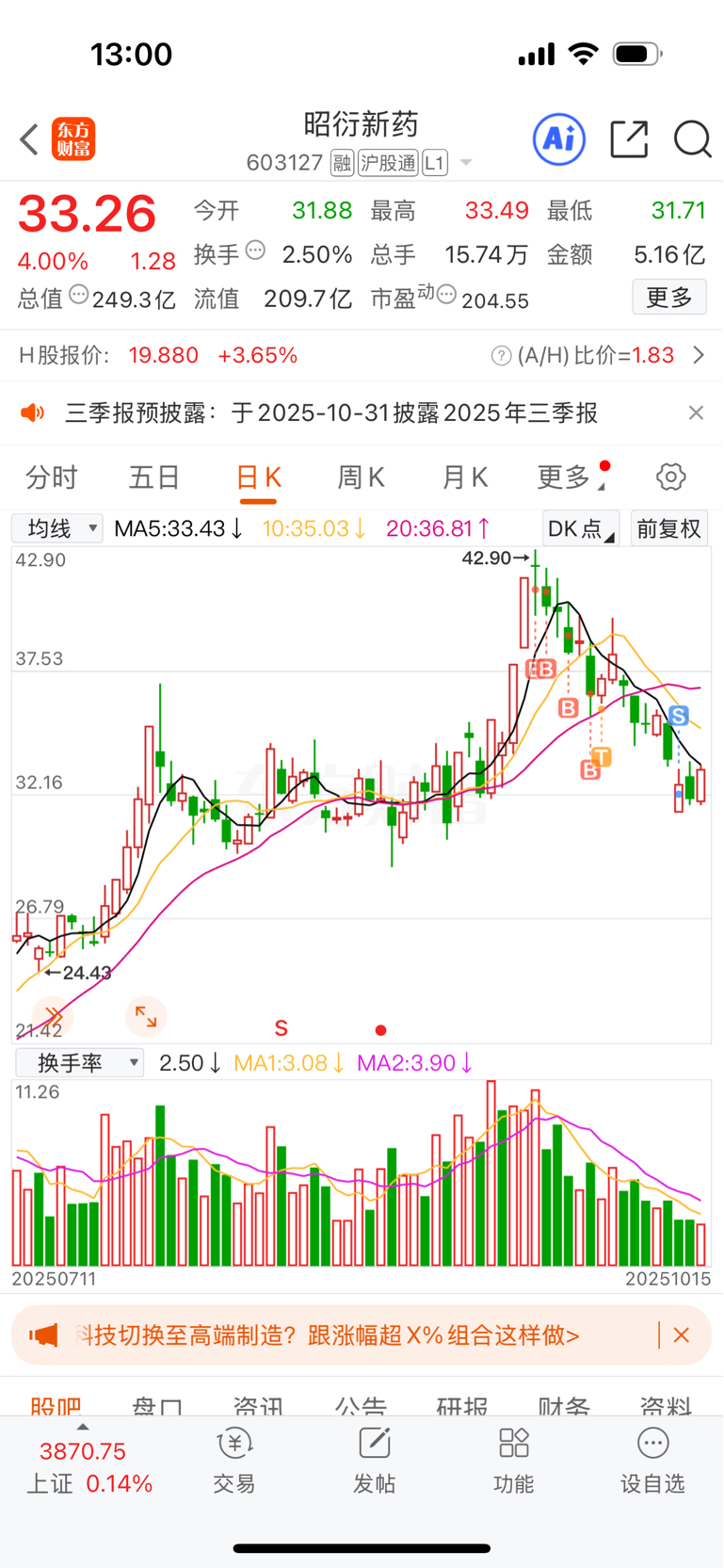 $昭衍新药(SH603127)$ 垃圾股,气死我了,拿了那么多天,起飞前卖了