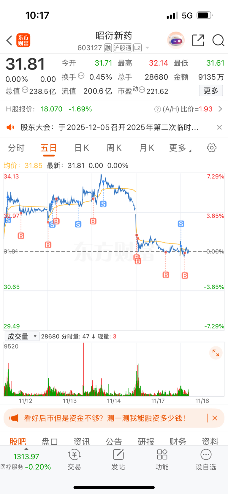 $昭衍新药(SH603127)$ 难道还没见底?不跌破前面31.40、31.51就不算真正破位,何况今天31.61,唉,人家挺牛bi
