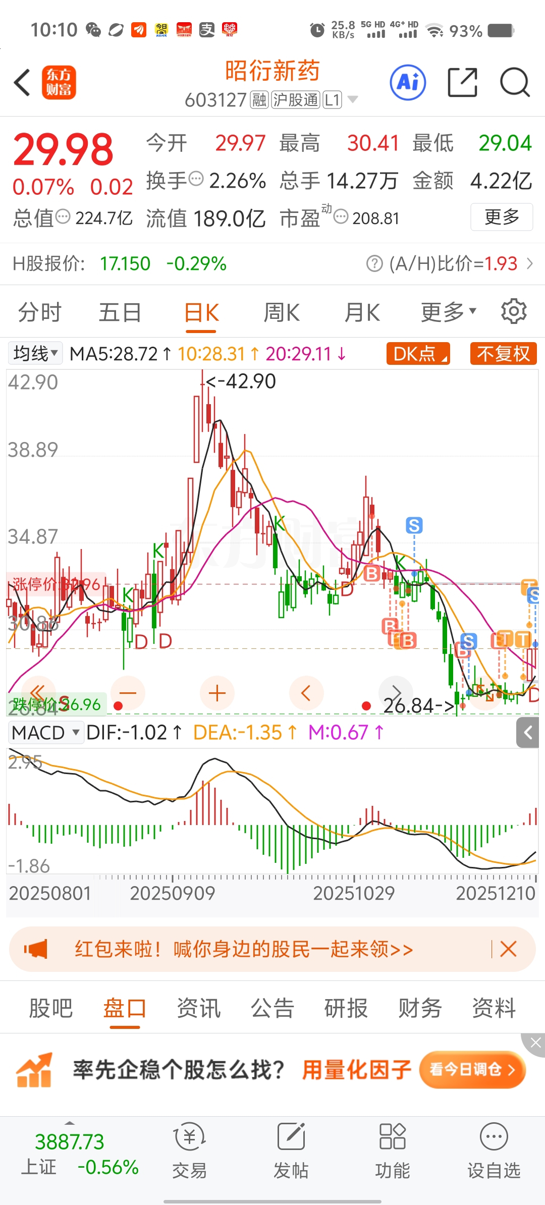 $昭衍新药(SH603127)$ 这资金真恶心,先往下砸深坑,-3左右震荡了20多分钟才往上拉。说明它们短时间也没信心网上硬顶,先跑了。