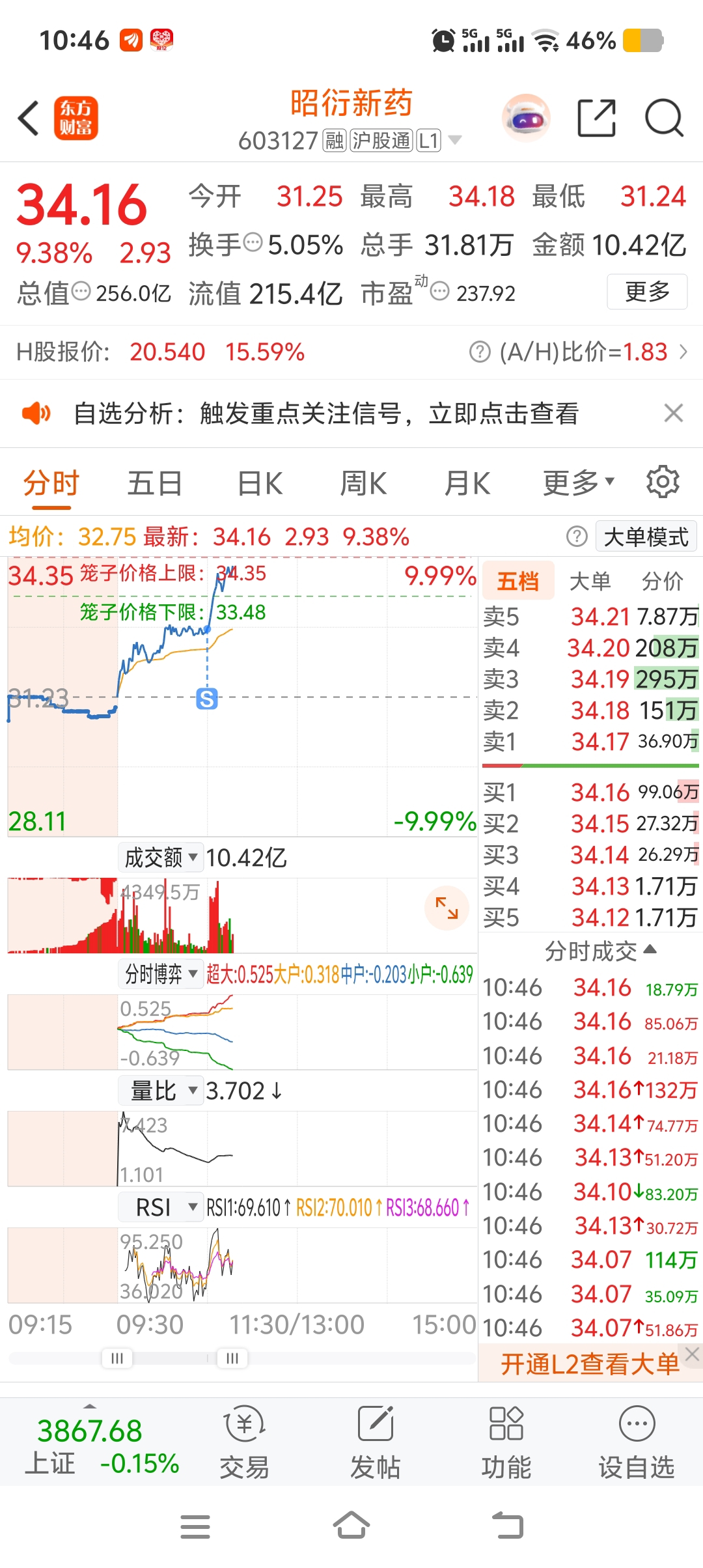 $昭衍新药(SH603127)$ 拉升就差我这一两百股吗
