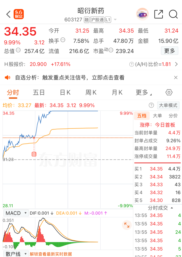 $昭衍新药(SH603127)$ 今天我拉的涨停板,望周知