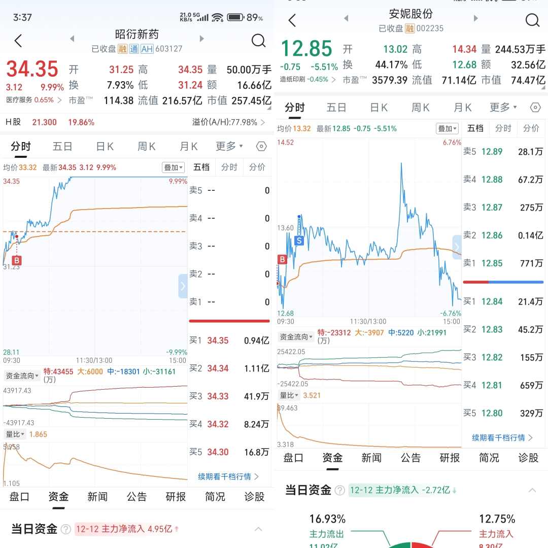 $昭衍新药(SH603127)$ $安妮股份(SZ002235)$ 今天早盘高点卖了安妮,买了这个,安妮早盘买点是昨天挂的一手。