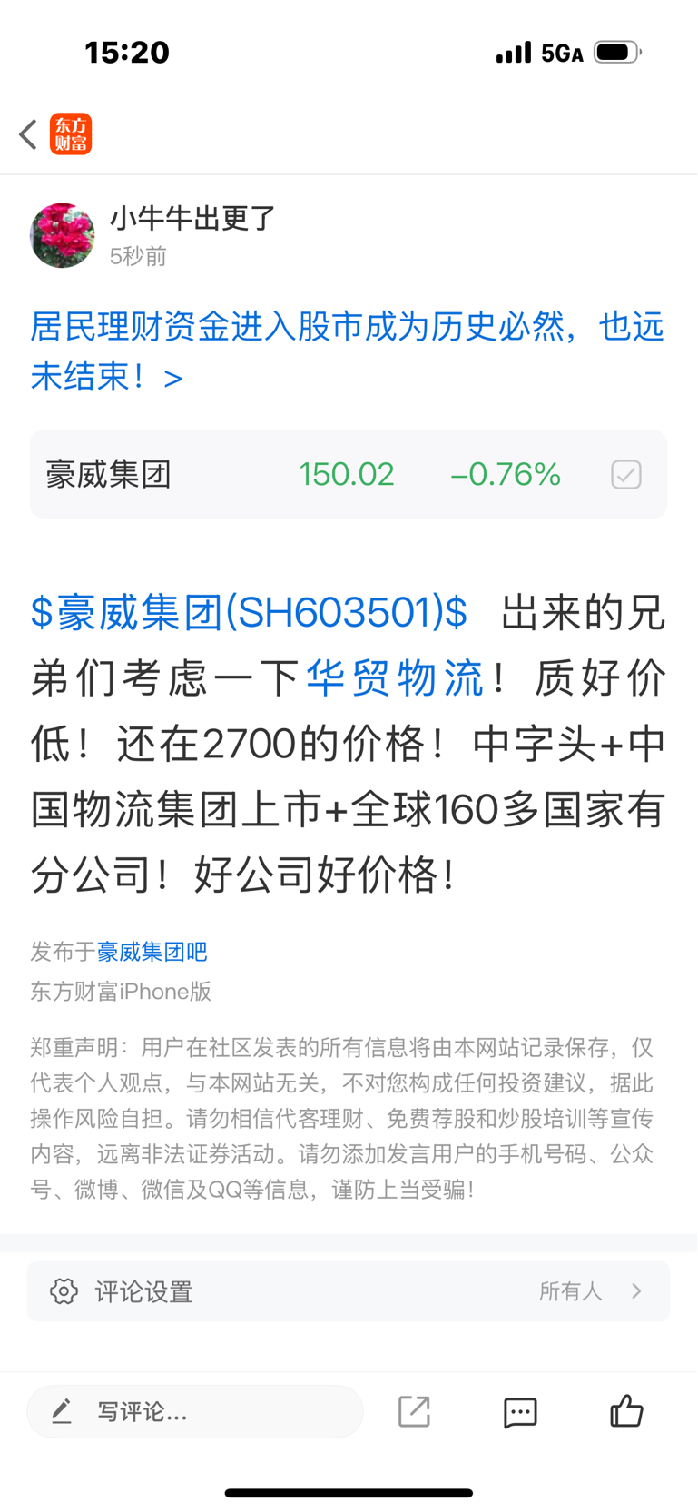 温馨提示: 1.根据《证券法》规定,禁止编造、传播虚假信息或者误导性信息,扰乱证券市场;2.用户在本社区发表的所有资料、言论等仅代表个人观点,与本网站立场无关,不对您构成任何投资建议。用户应基于自己的独立判断,自行决定证券投资并承担相应风险。《东方财富社区管理规定》