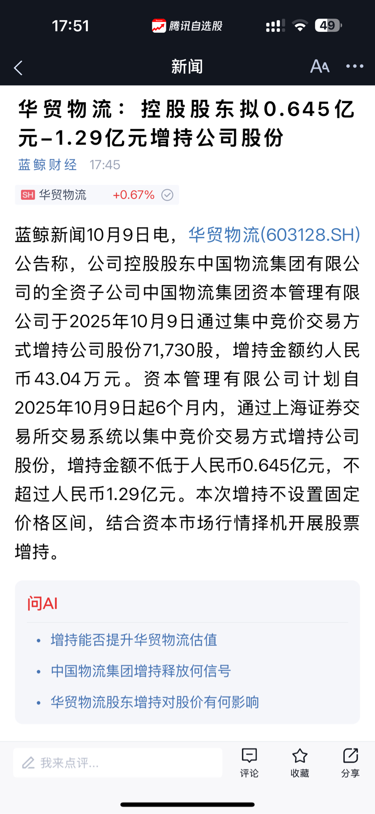 $华贸物流(SH603128)$