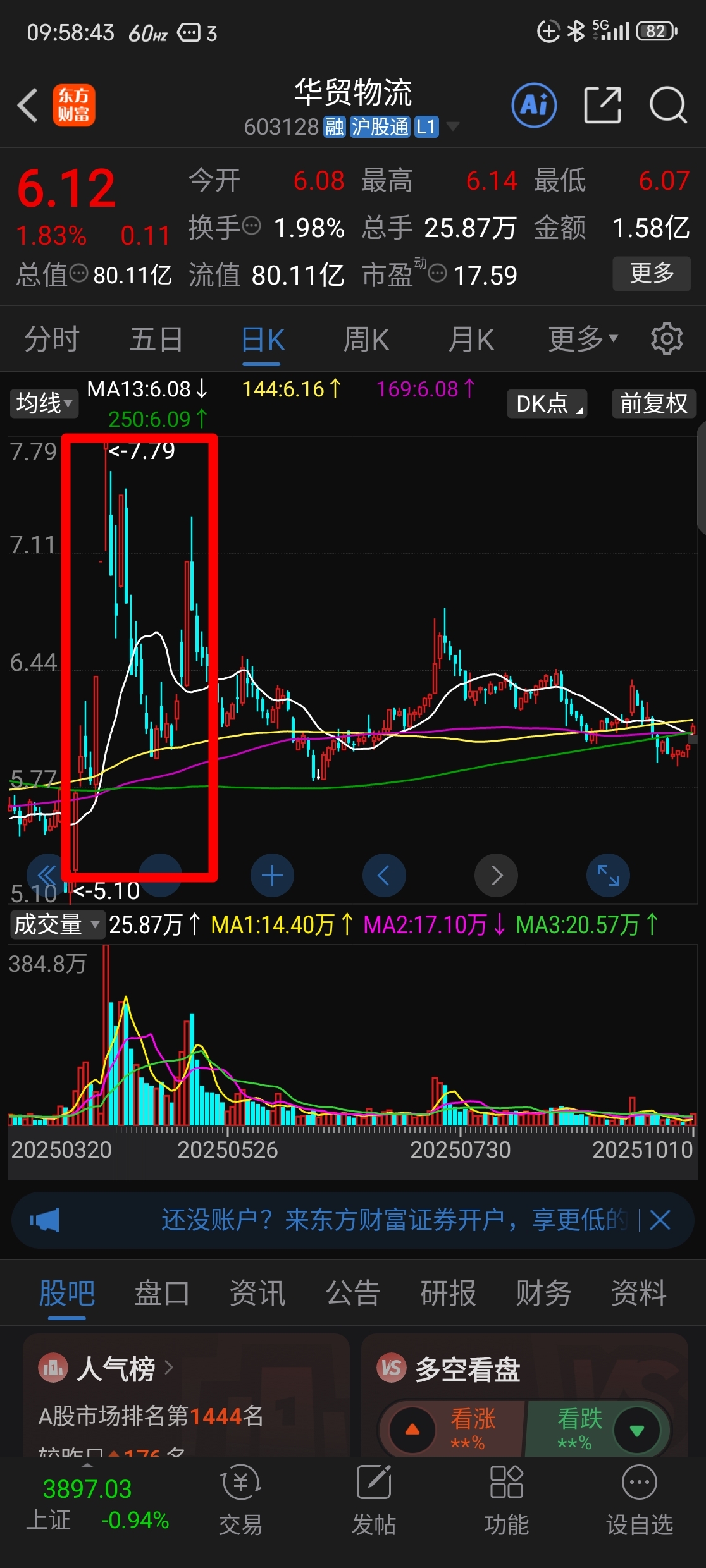 本股庄家的成本价在6.1附近,小仓位埋伏就可以了。各位韭菜,不要太担心啦,双十一
