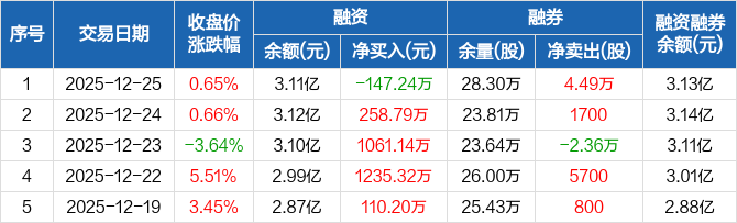华贸物流:融资净偿还147.24万元,融资余额3.11亿元(12-25)