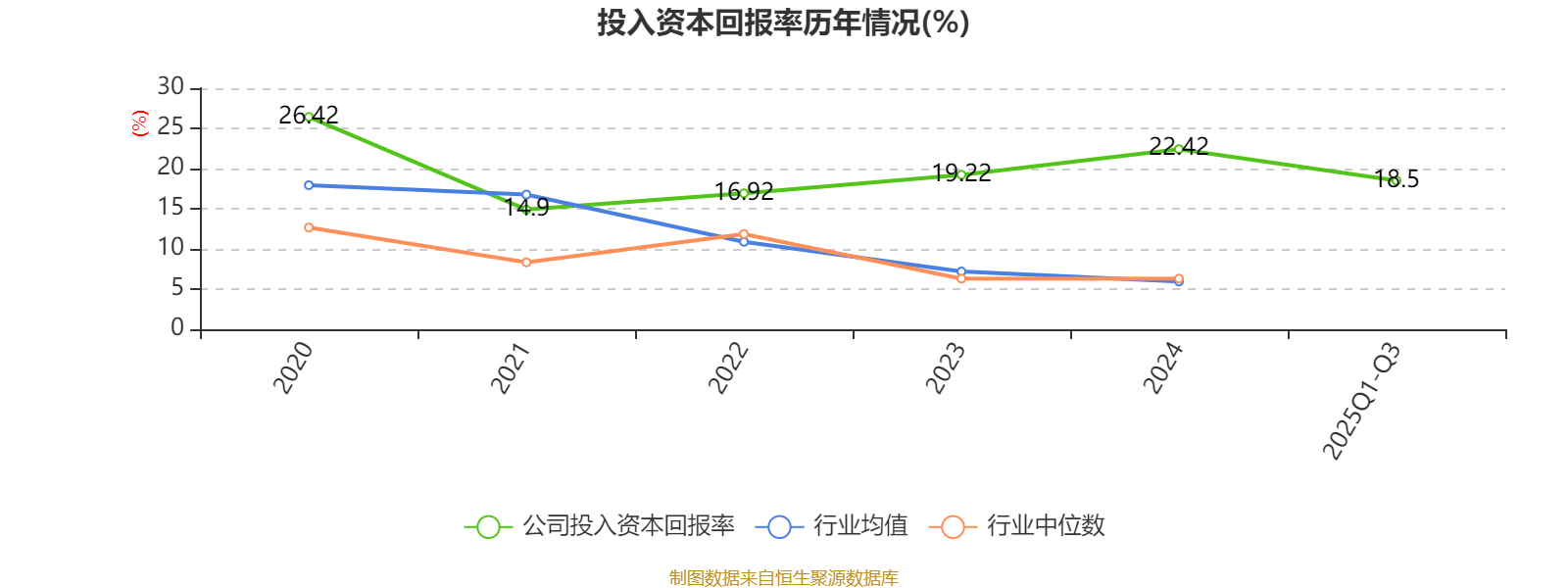 公司2025年前三季度投入资本回报率为18.5%,较上年同期上升0.71个百分点。